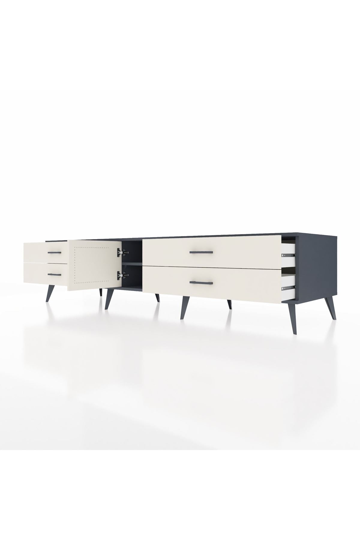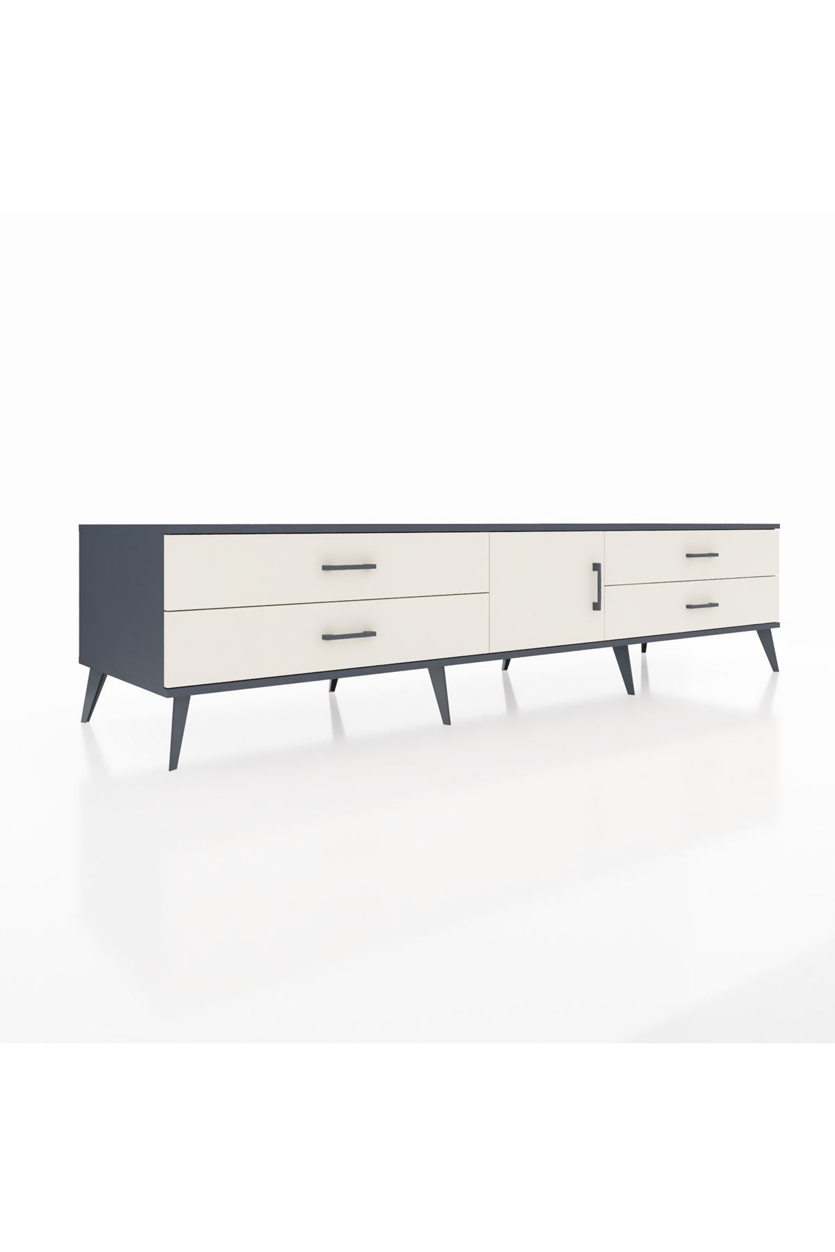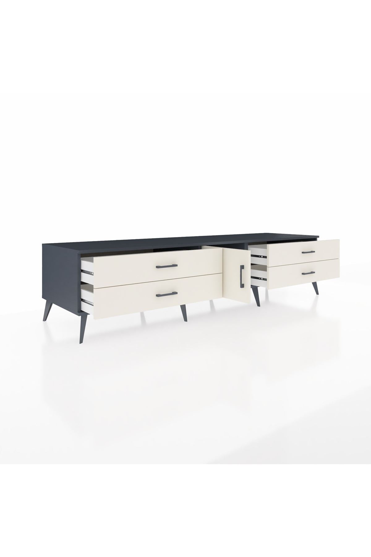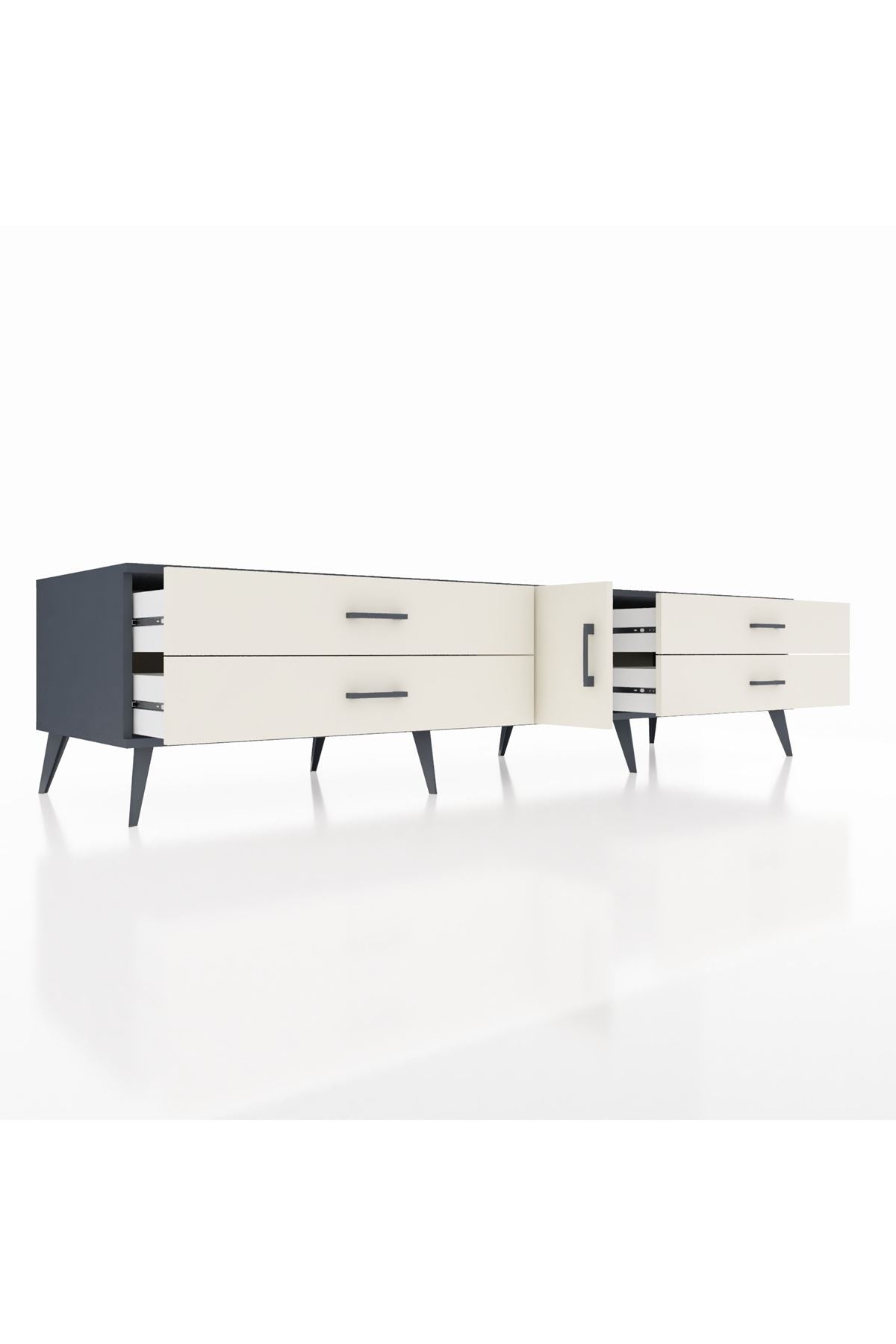 Kronos TV Ünitesi Tek Raflı 4 Çekmeceli Tek Kapaklı 220x59x51 Antrasit-Aytaşı