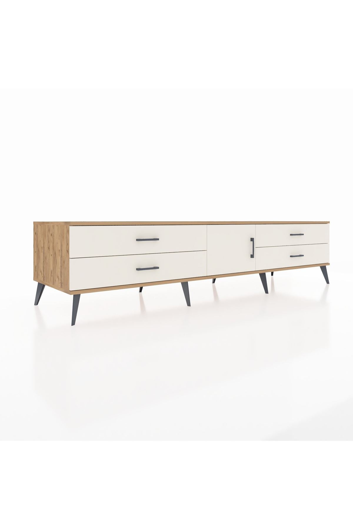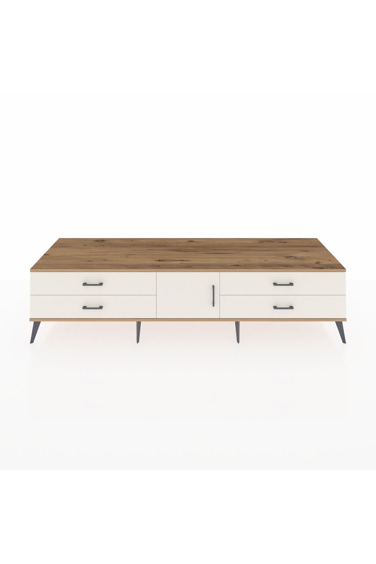 Kronos TV Ünitesi Tek Raflı 4 Çekmeceli Tek Kapaklı 220x59x51 Çam-Aytaşı