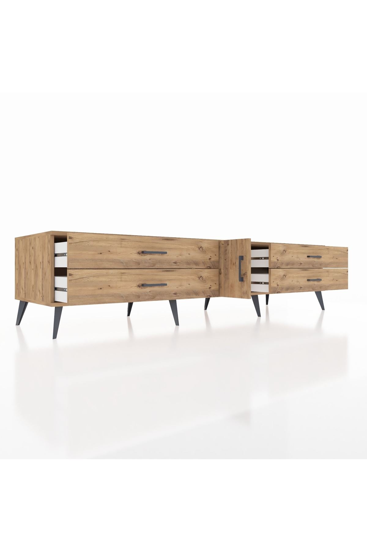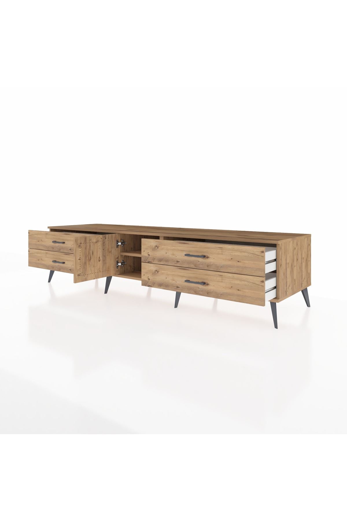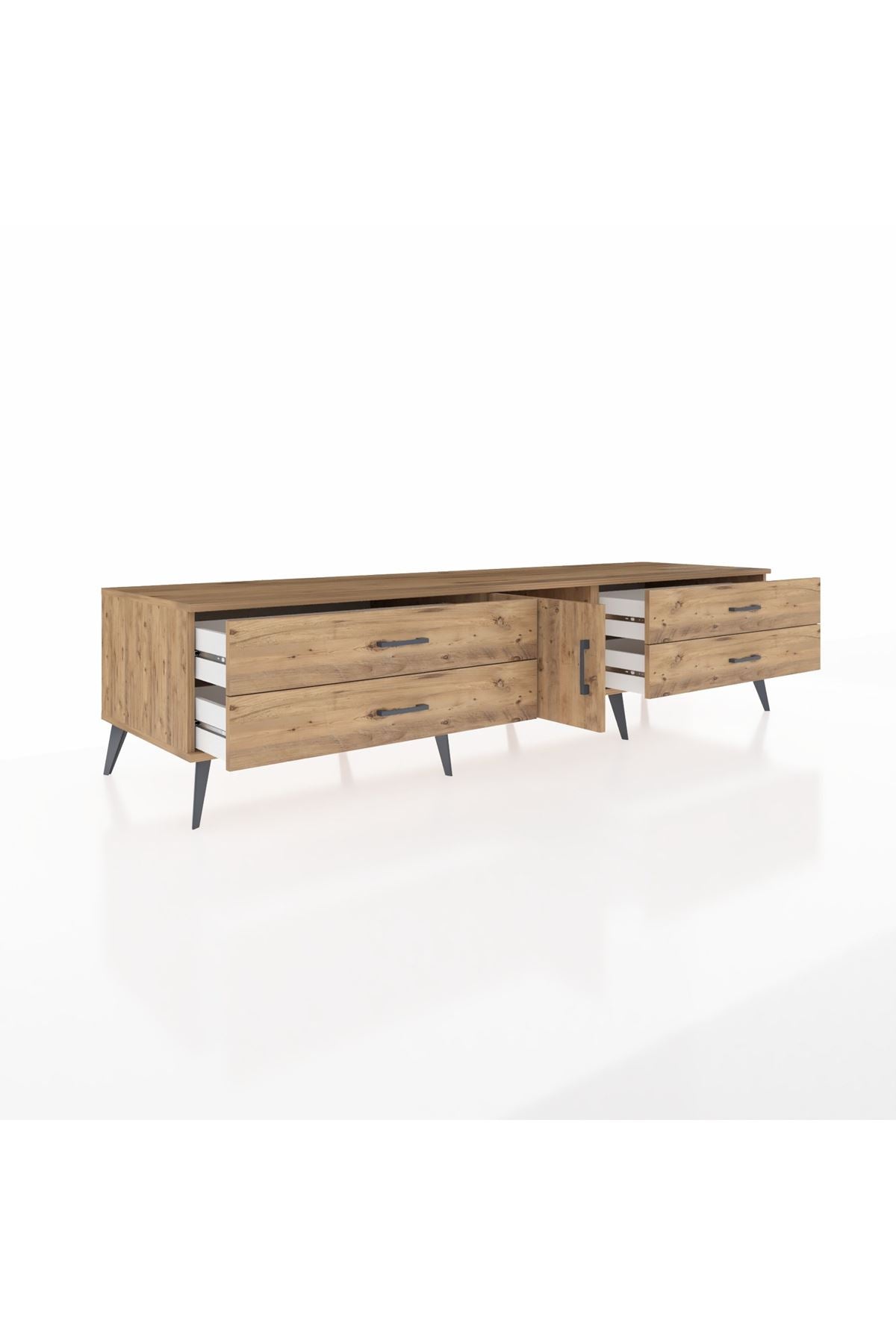 Kronos TV Ünitesi Tek Raflı 4 Çekmeceli Tek Kapaklı 220x59x51 Çam-Çam