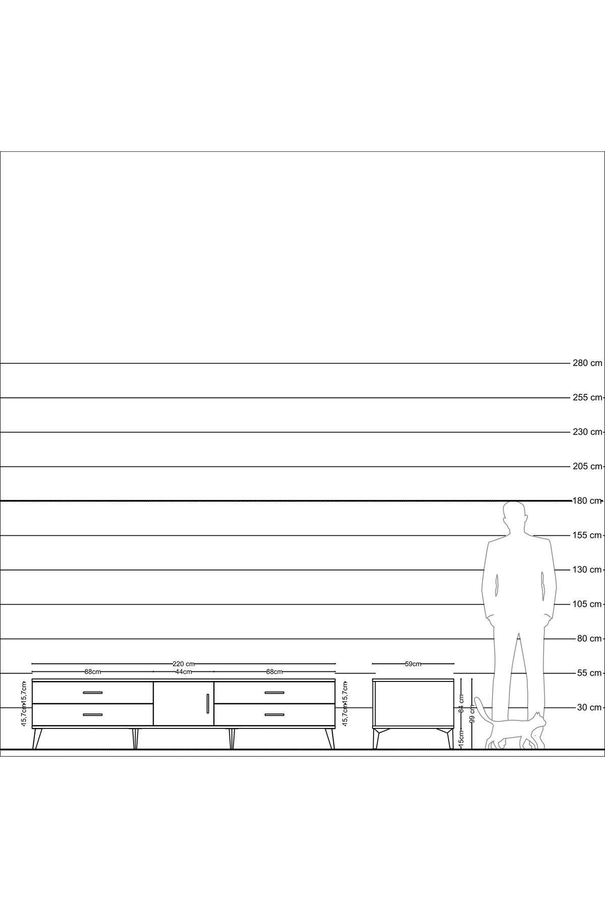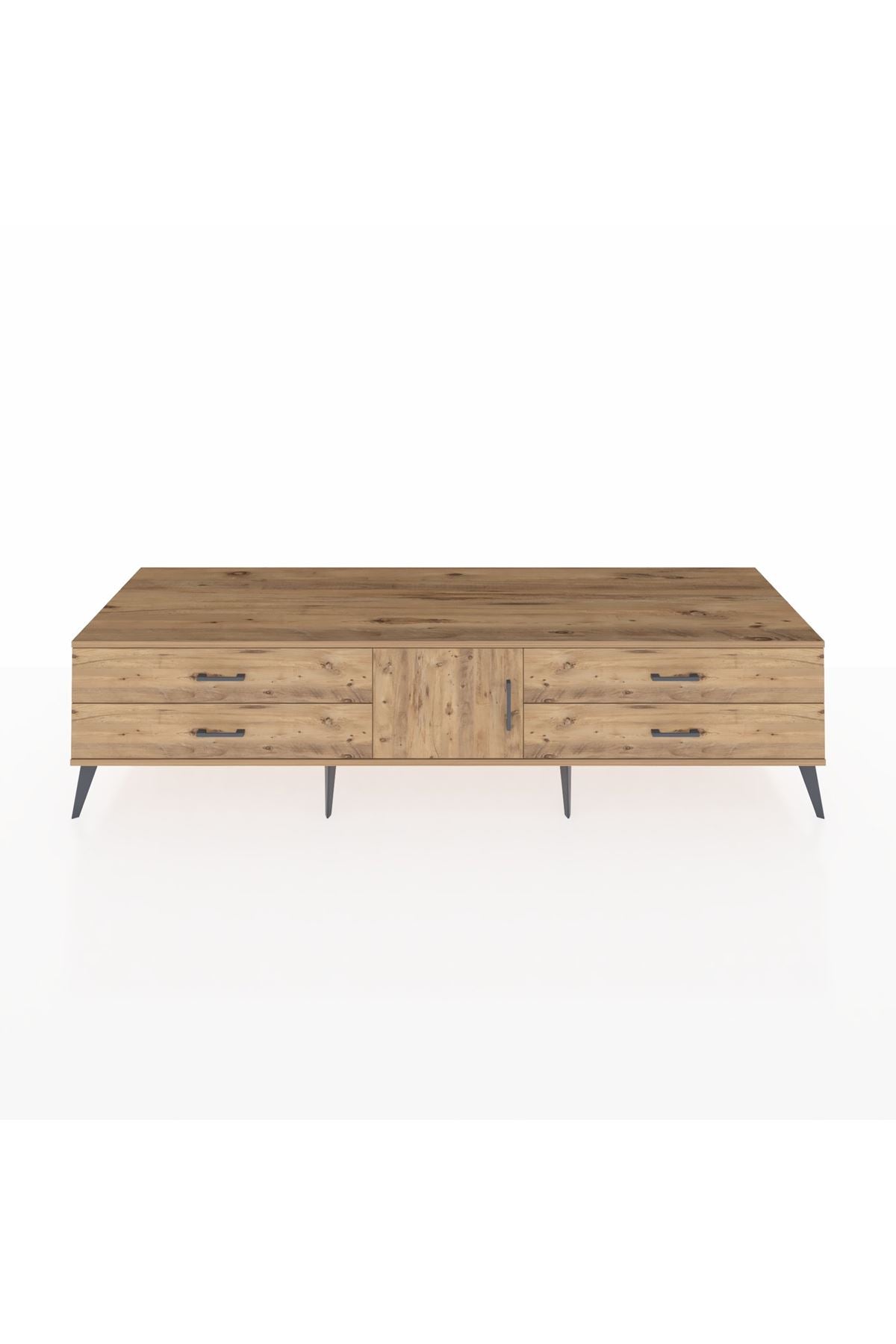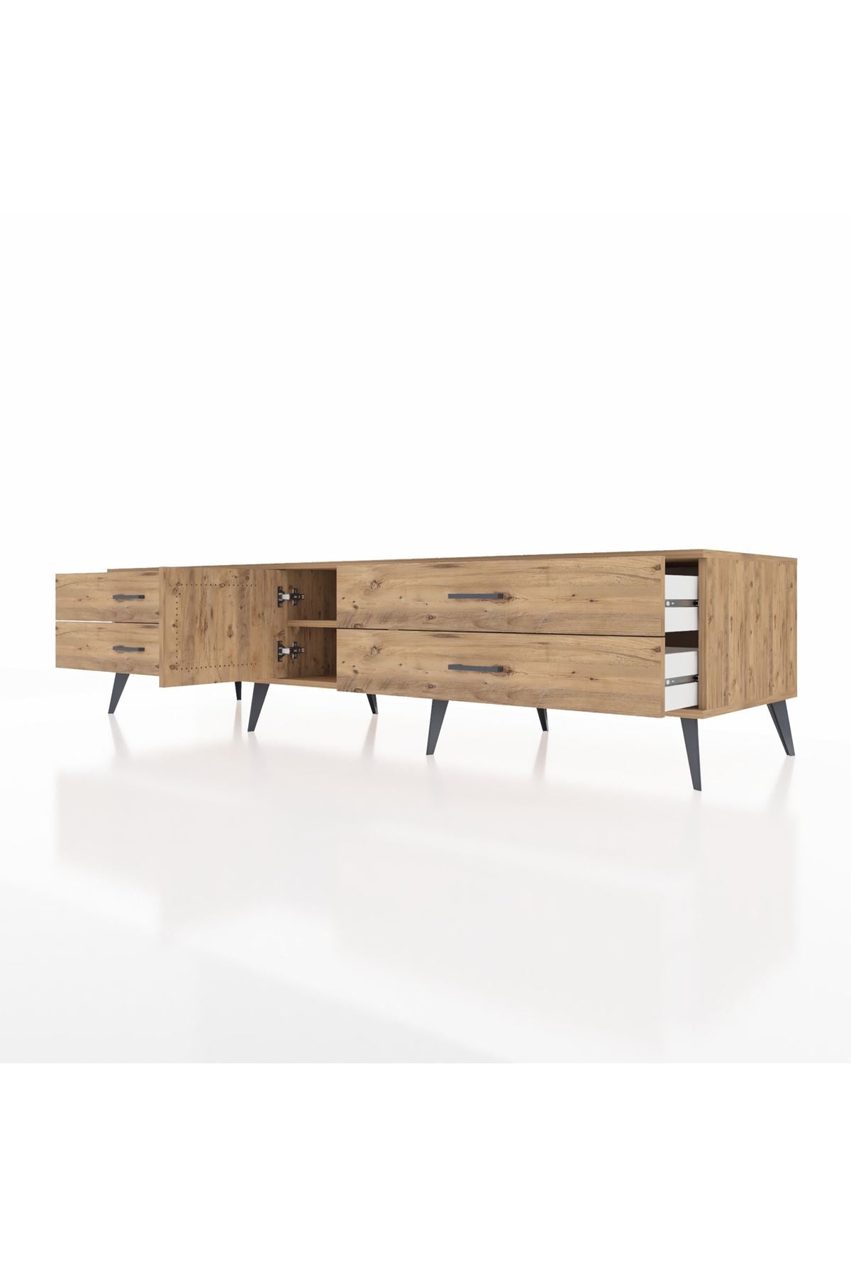Kronos TV Ünitesi Tek Raflı 4 Çekmeceli Tek Kapaklı 220x59x51 Çam-Çam