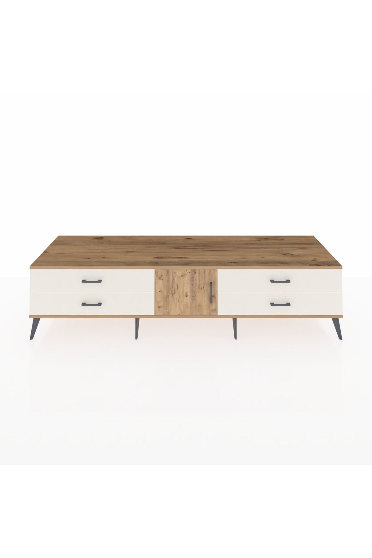Kronos TV Ünitesi Tek Raflı 4 Çekmeceli Tek Kapaklı 220x59x51 Çam-Çam/Aytaşı