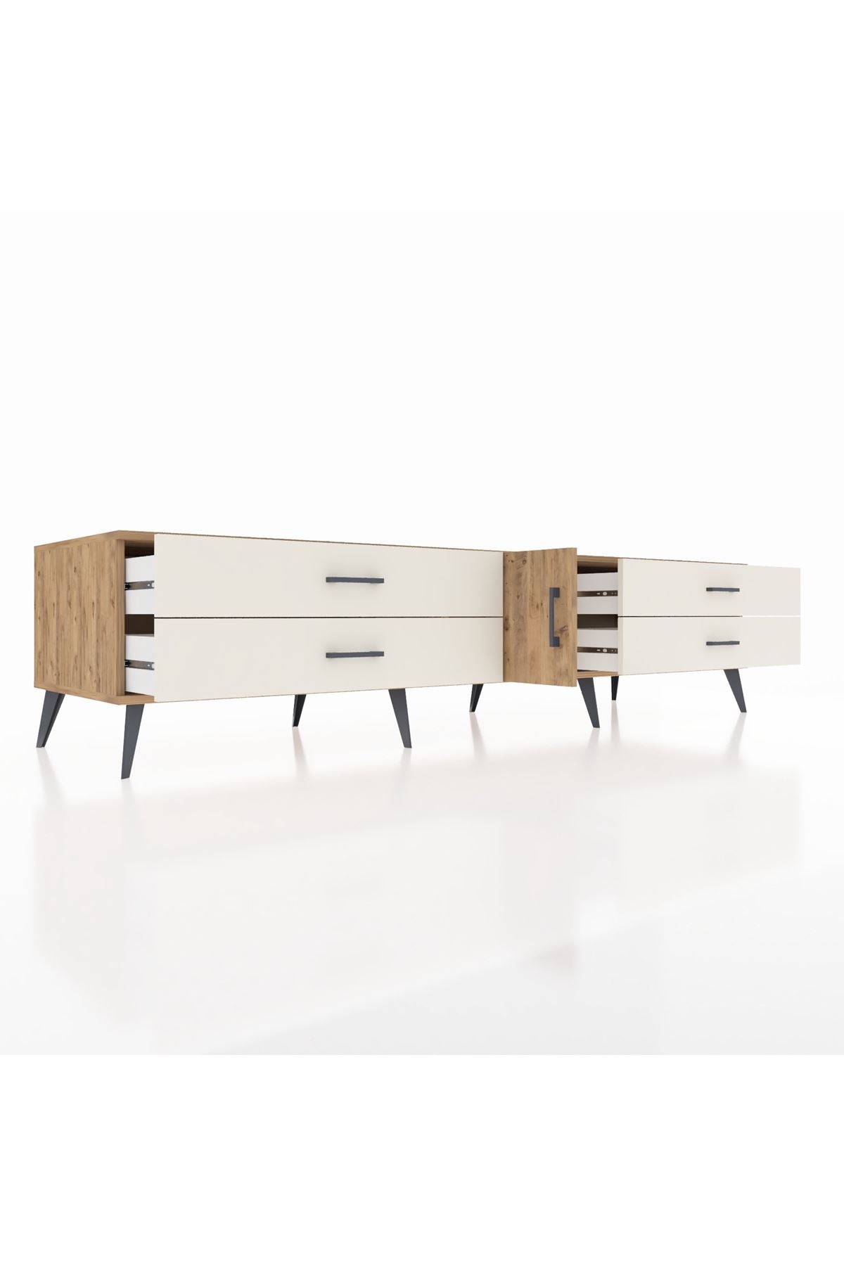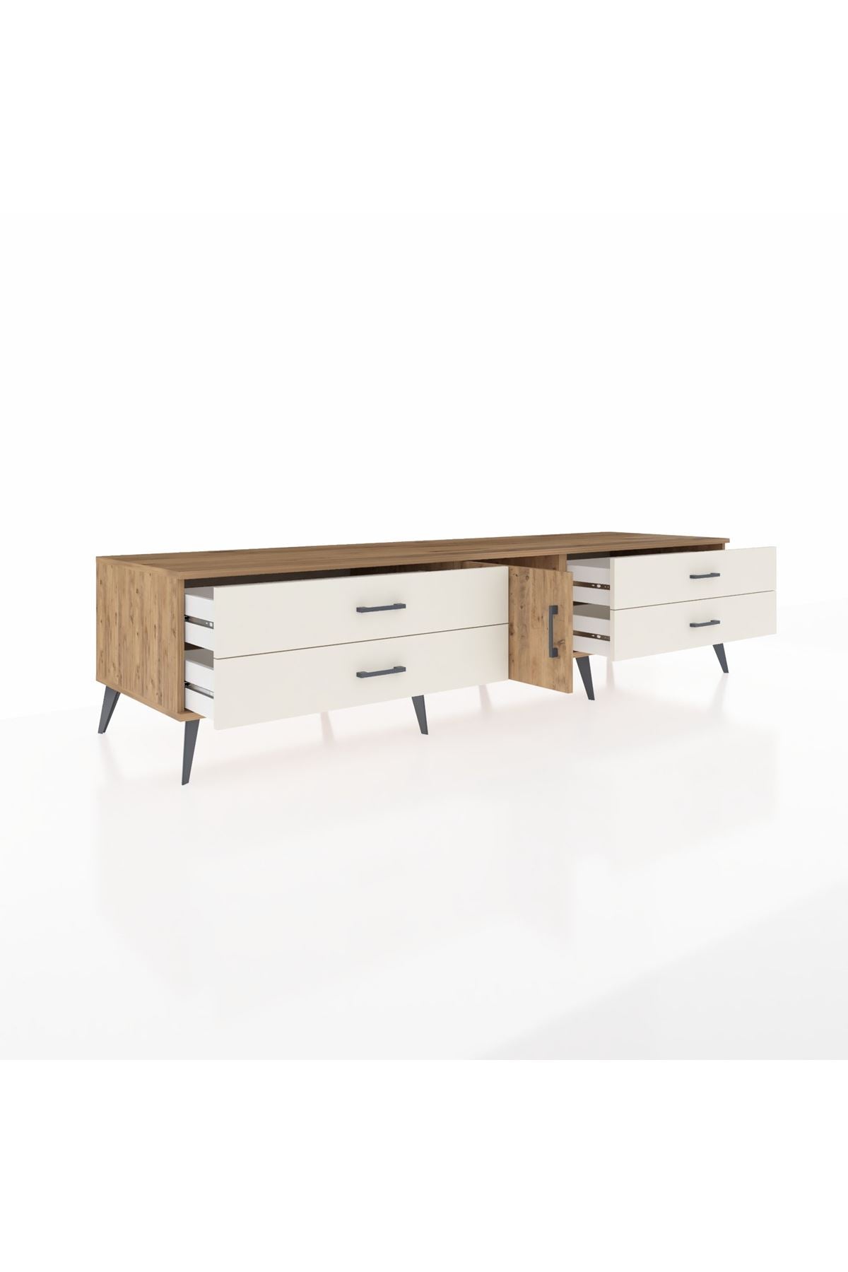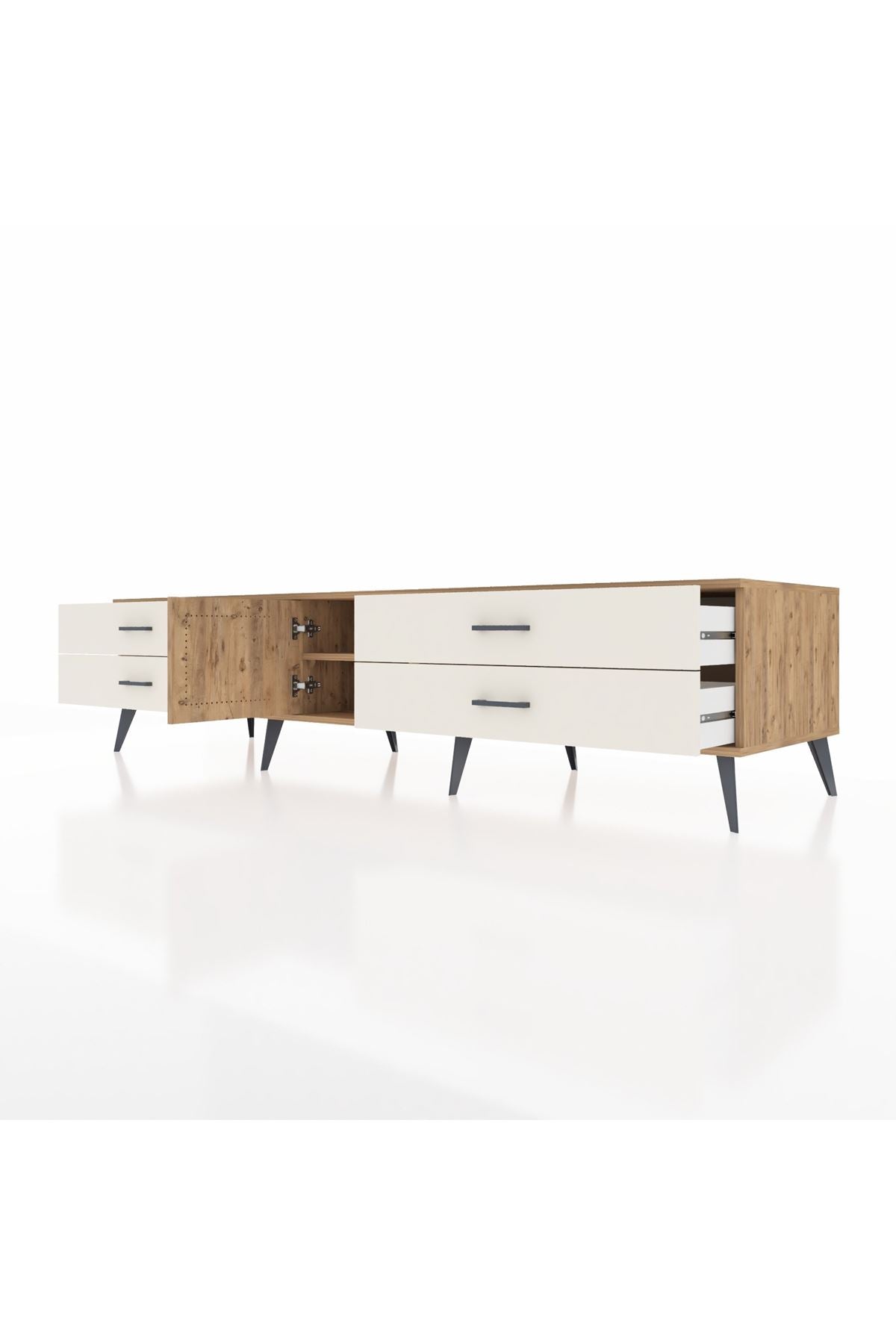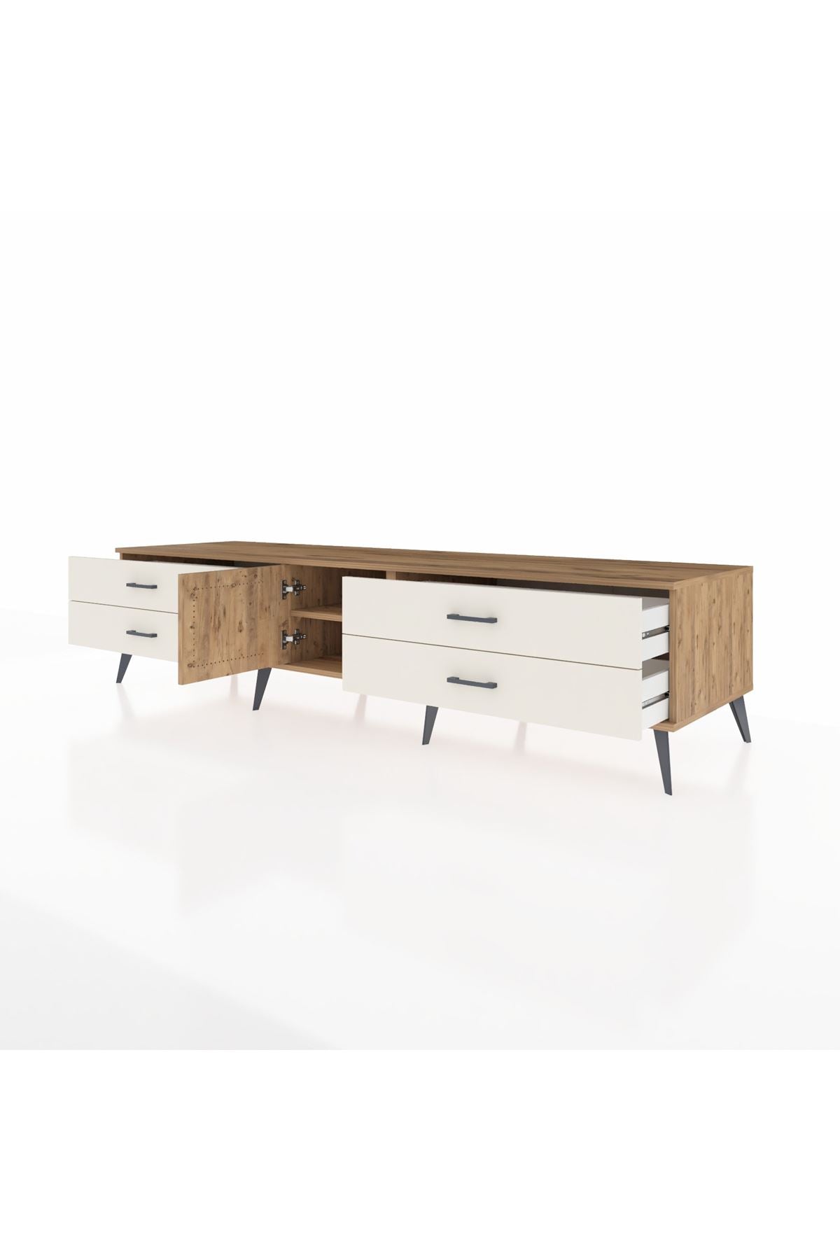 🦾 Metal ayakları ve şık metal kulpları sayesinde Kronos TV Ünitesi, sadece göz alıcı değil, aynı zamanda son derece sağlam. Yüksek ayakları sayesinde robot süpürge kullanımına da uygun, temizlik artık çok daha kolay!