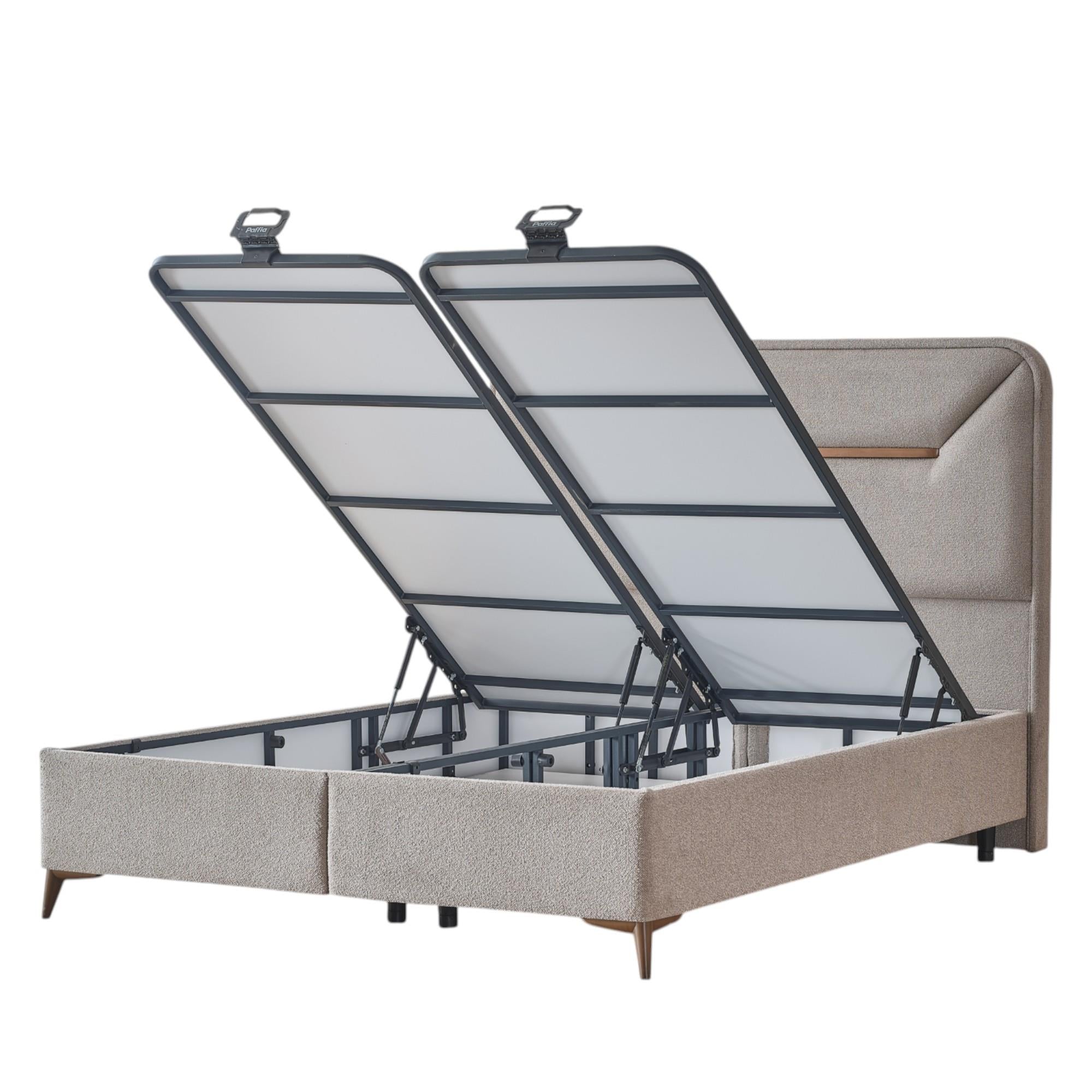 - Modern tasarımlı başlık ve depolamalı baza ile tam bir yatak odası takımı