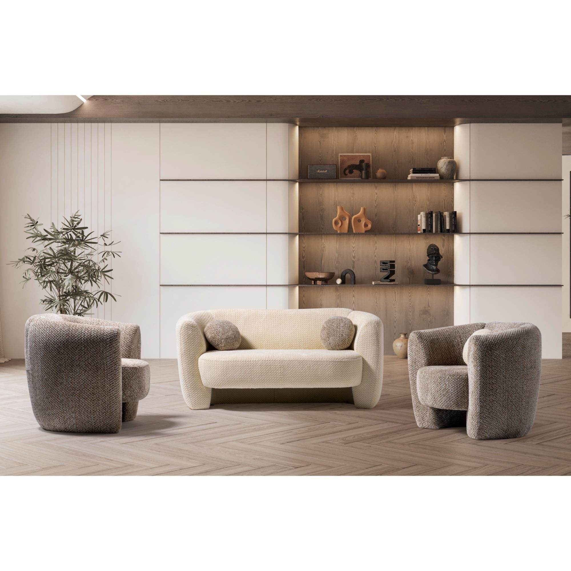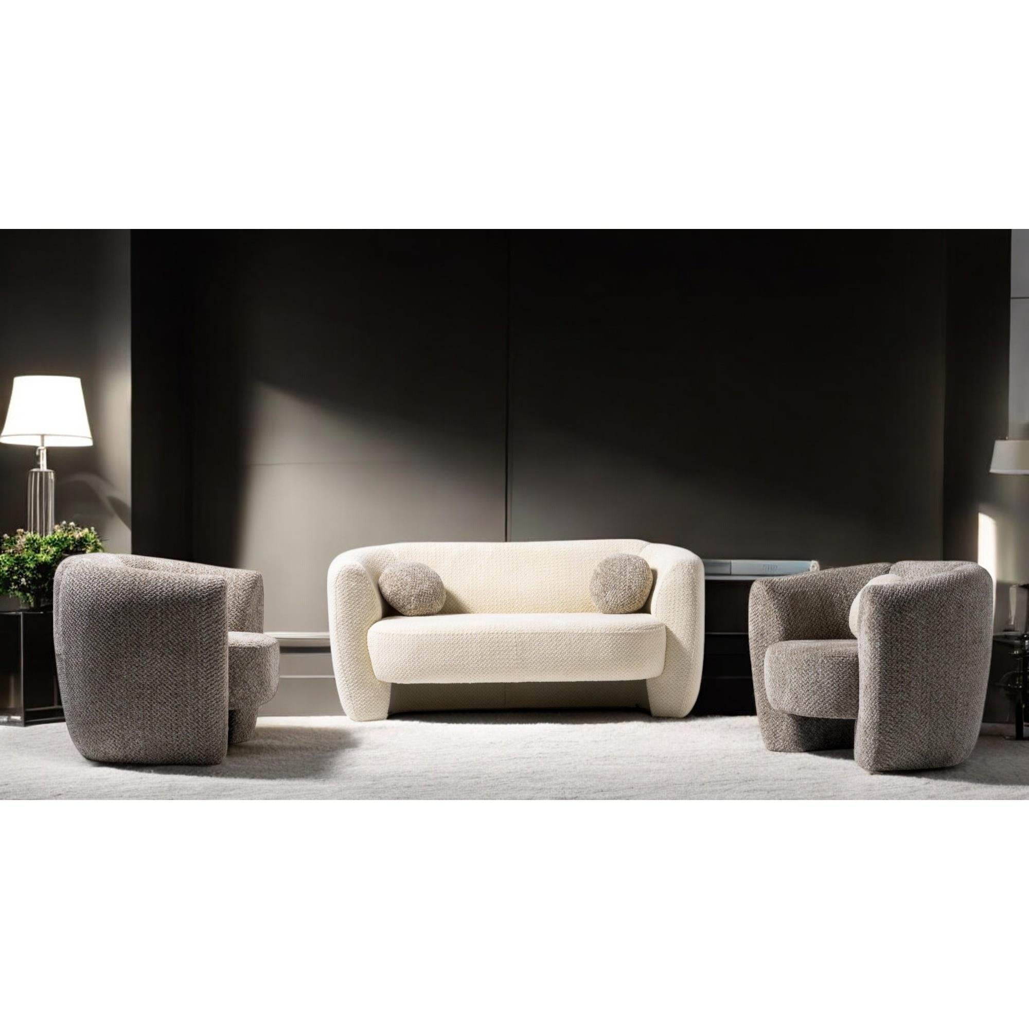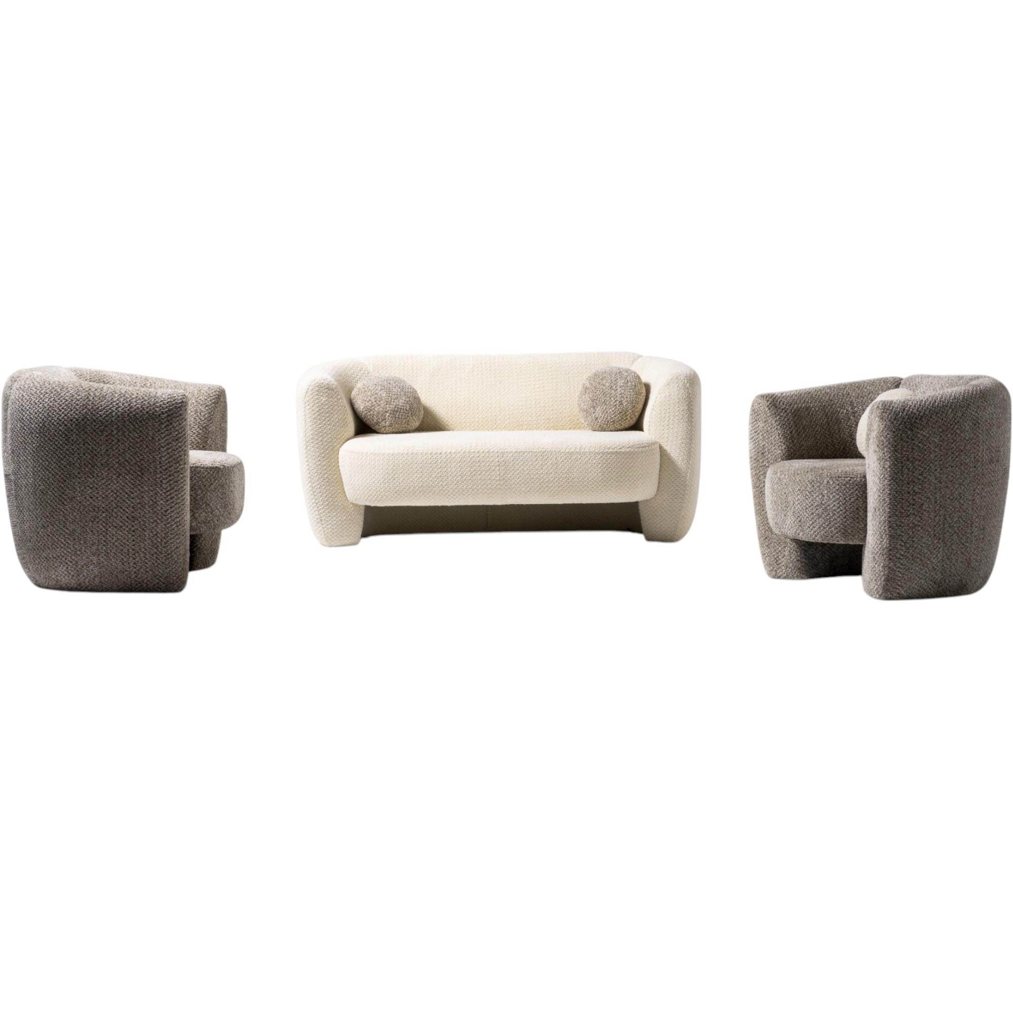 Luna Oturma Grubu, minimalizmden ilham alan modern tasarımıyla her tür dekorasyon tarzına uyum sağlar. Ahşap detayları ve dokulu kumaşı sayesinde hem sıcak hem de sofistike bir hava yaratır. Geniş oturma odalarından butik mekanlara kadar her alanda tercih edilebilir.