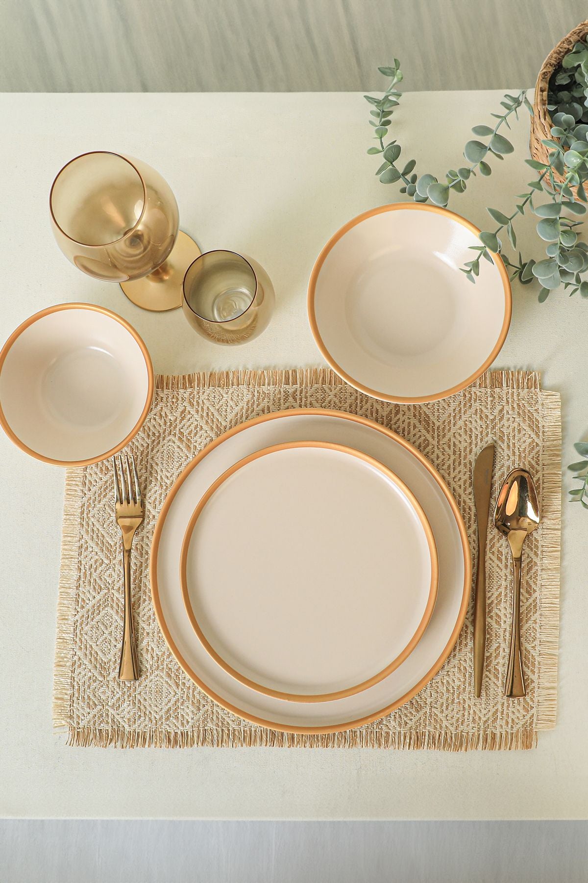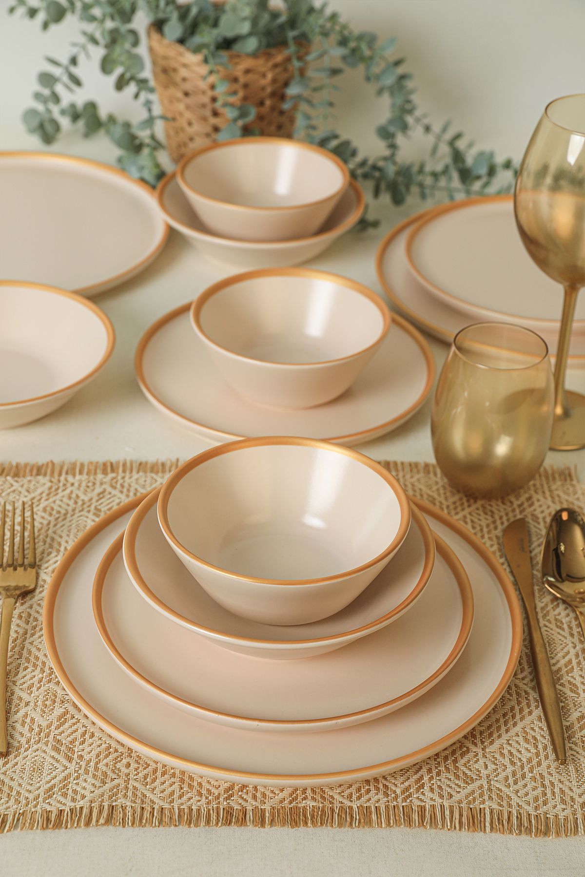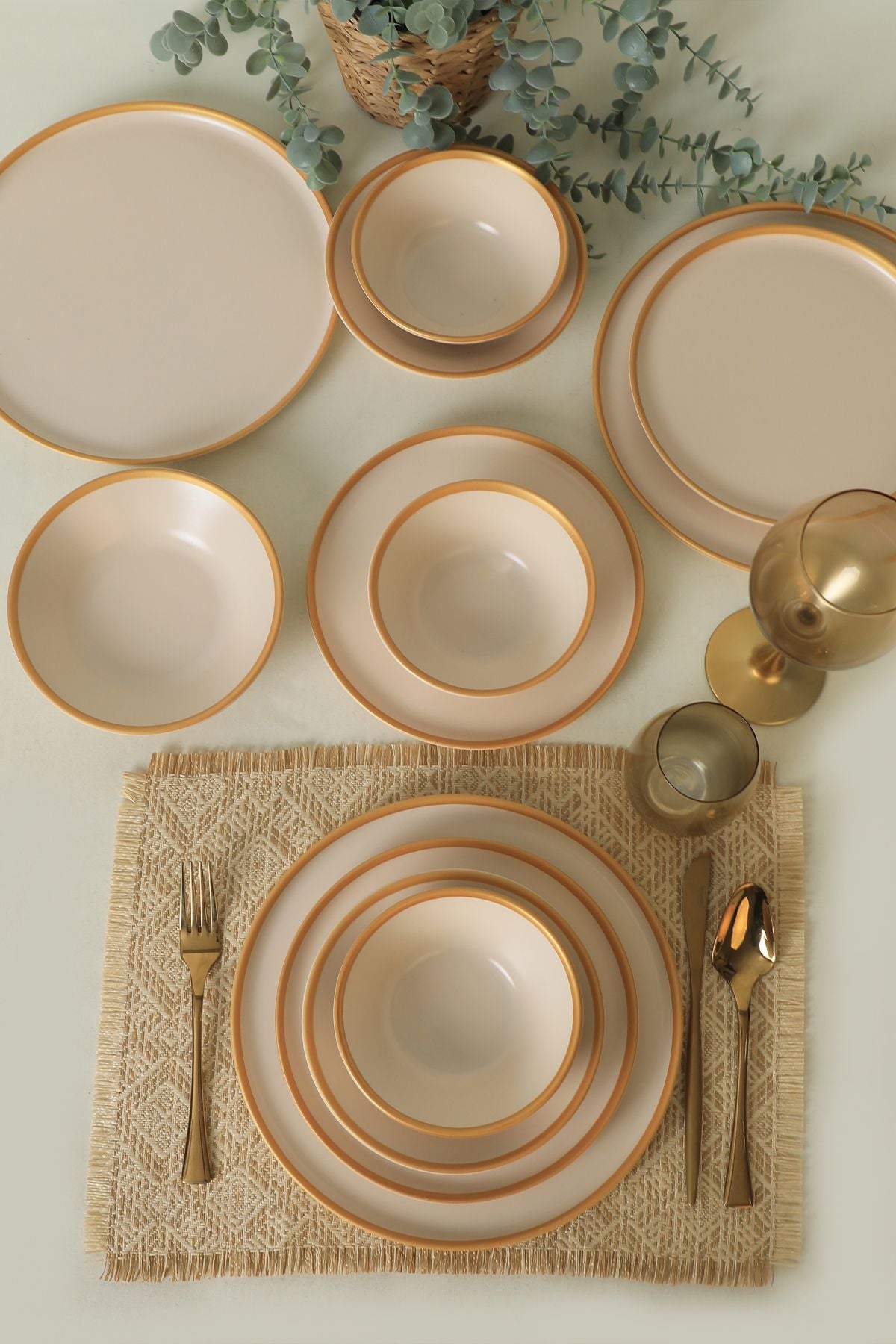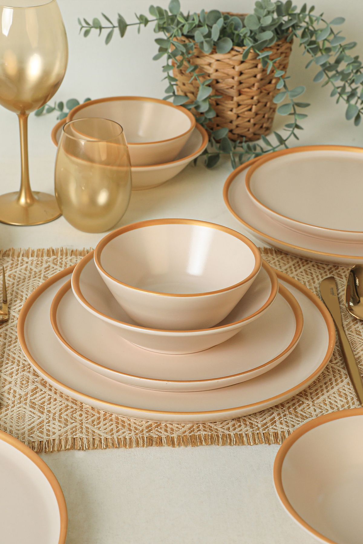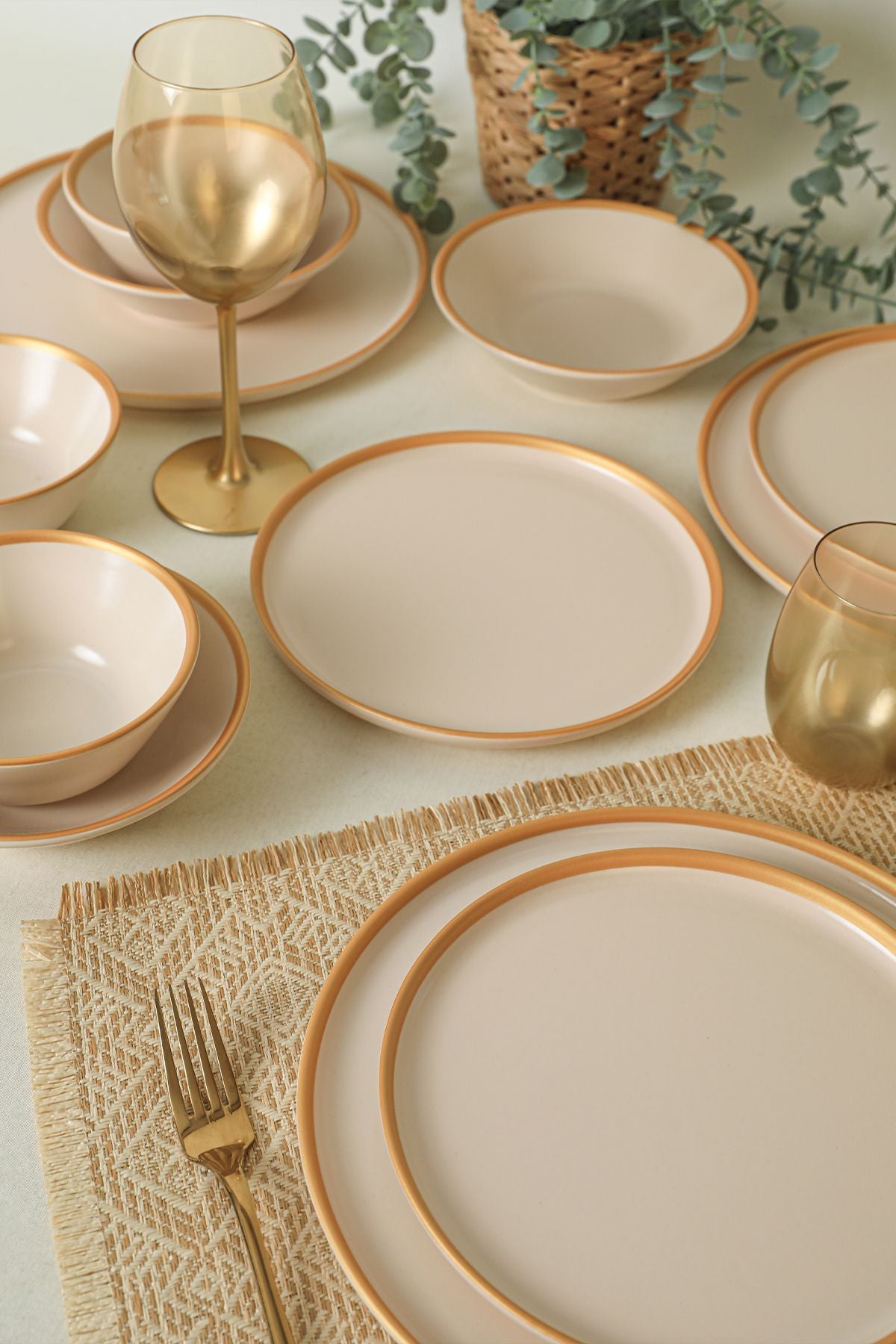 Sıradışı ve eşsiz keramika 6 kişilk Mat Krem gold fileli yemek takımı sizin için usta ellerde özenle hazırlanmıştır. Mutfağınızın vazgeçilmez parçası olacak bu yemek takımı hem günlük yaşamınız da hem de özel günlerde şık bir sunum yakalamanızı sağlayacaktır. Kremin zarafeti ve gold filenin şıklığı herkesi kendine hayran ettiği için bu yemek takımı sevdiklerinize güzel bir hediye seçimi olacaktır.