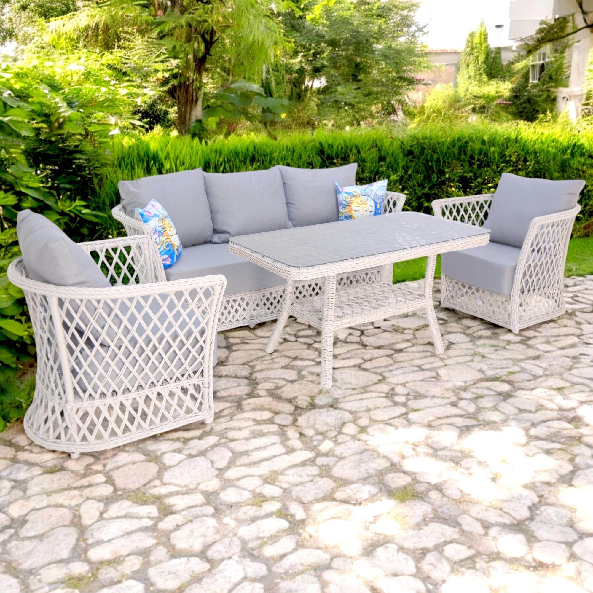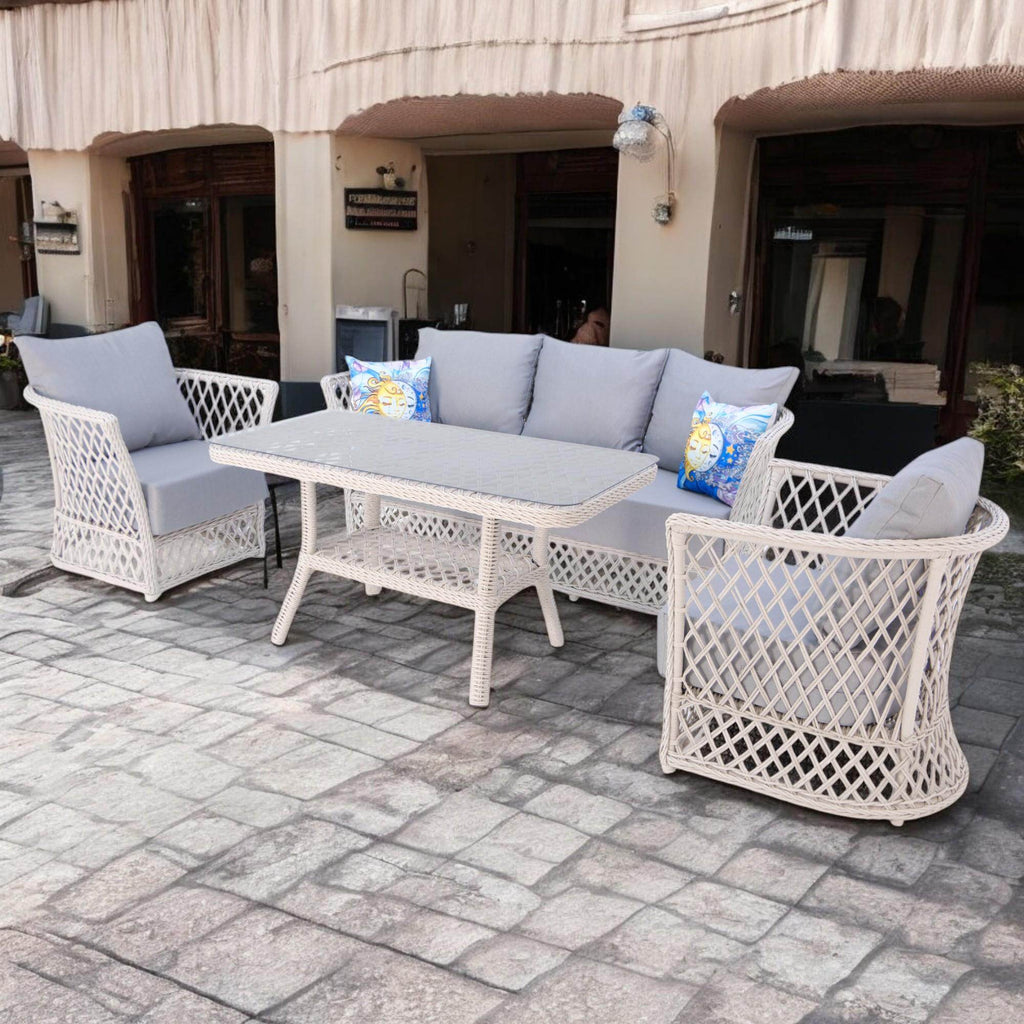 Açık havada konforun ve şıklığın keyfini çıkarmak isteyenler için tasarlanan Neris Üçlü Rattan Bahçe Oturma Grubu, modern ve ferah tasarımıyla dikkat çekiyor. Bahçe mobilyası denildiğinde akla gelen klasik şıklığı Wintech teknolojisiyle üretilmiş dayanıklı rattan örgü ve alüminyum gövde ile bir araya getirerek estetik ve uzun ömürlü kullanım sunuyor.