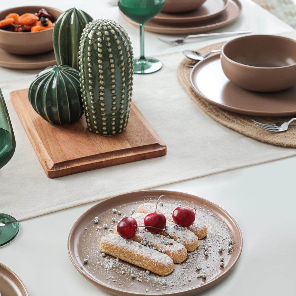 Keramika'nın özel tasarımlarından nordic, formunun doğanın renkleri ile buluştuğu nordic mat toprak taupe yemek takımı, usta ellerde şekillenerek özenle üretilmiştir. Doğanın renklerini sofralarınıza taşıyacak bu takımı en mutlu akşam yemeklerinizde ya da günün her saati özel sunumlarınızda kullanabilirsiniz. Özel bir hediye olarak da düşünebileceğiniz bu yemek takımı sevdiklerinizi çok mutlu edecek ve her sofrada sizi hatırlamalarını sağlayacaktır.
