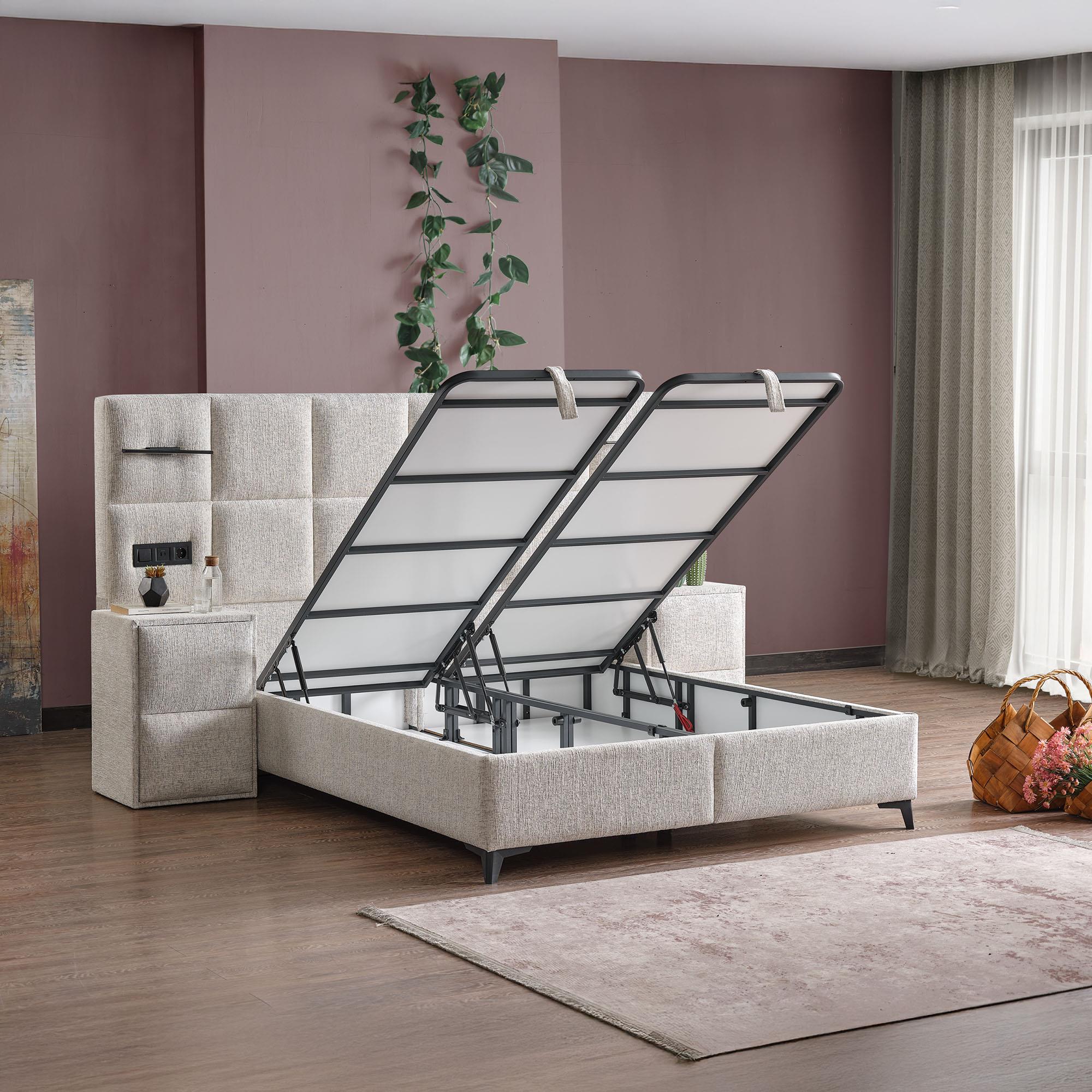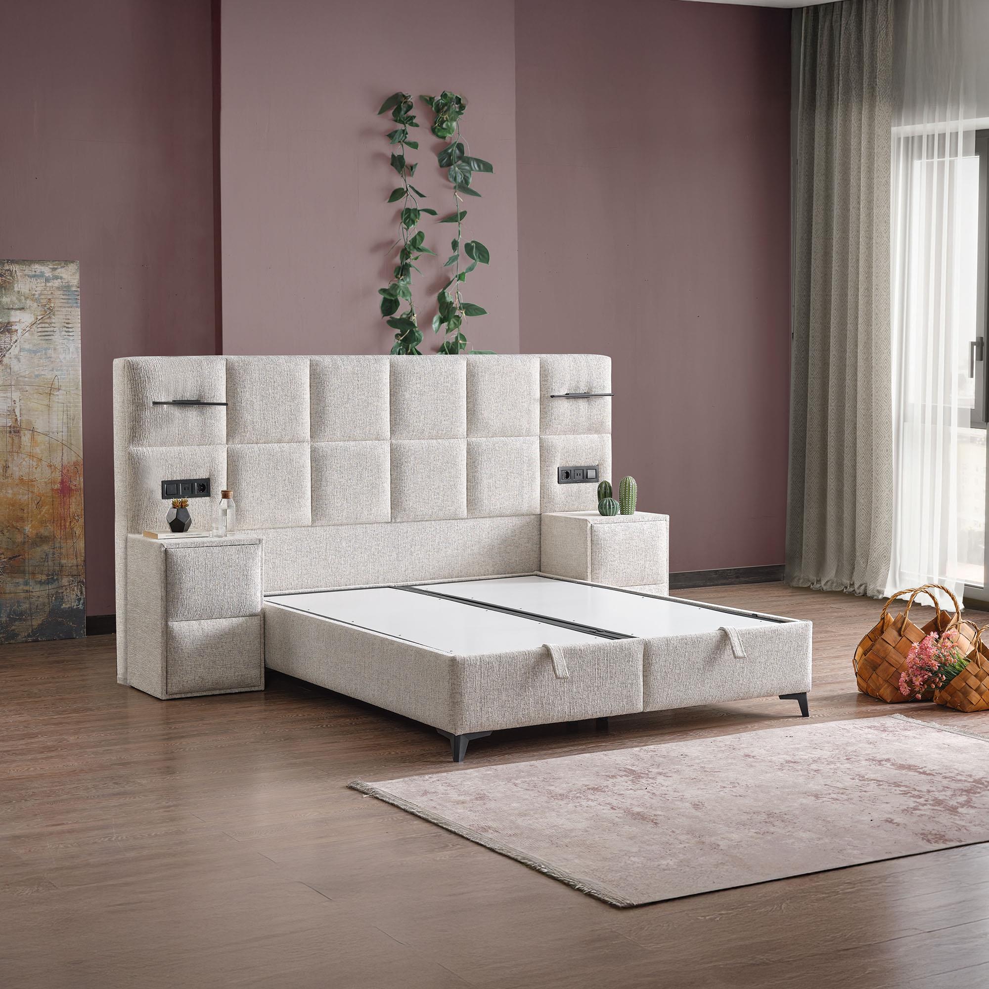Polaris yalnızca estetik bir baza seti değil; geniş depolama alanıyla düzeni koruyan pratik bir çözümdür. Başlıkta entegre okuma lambası, LED ışık, priz ve USB şarj portları günlük kullanımda büyük kolaylık sağlar; tam kombin yapısıyla baza başlık seti arayanlar için idealdir.