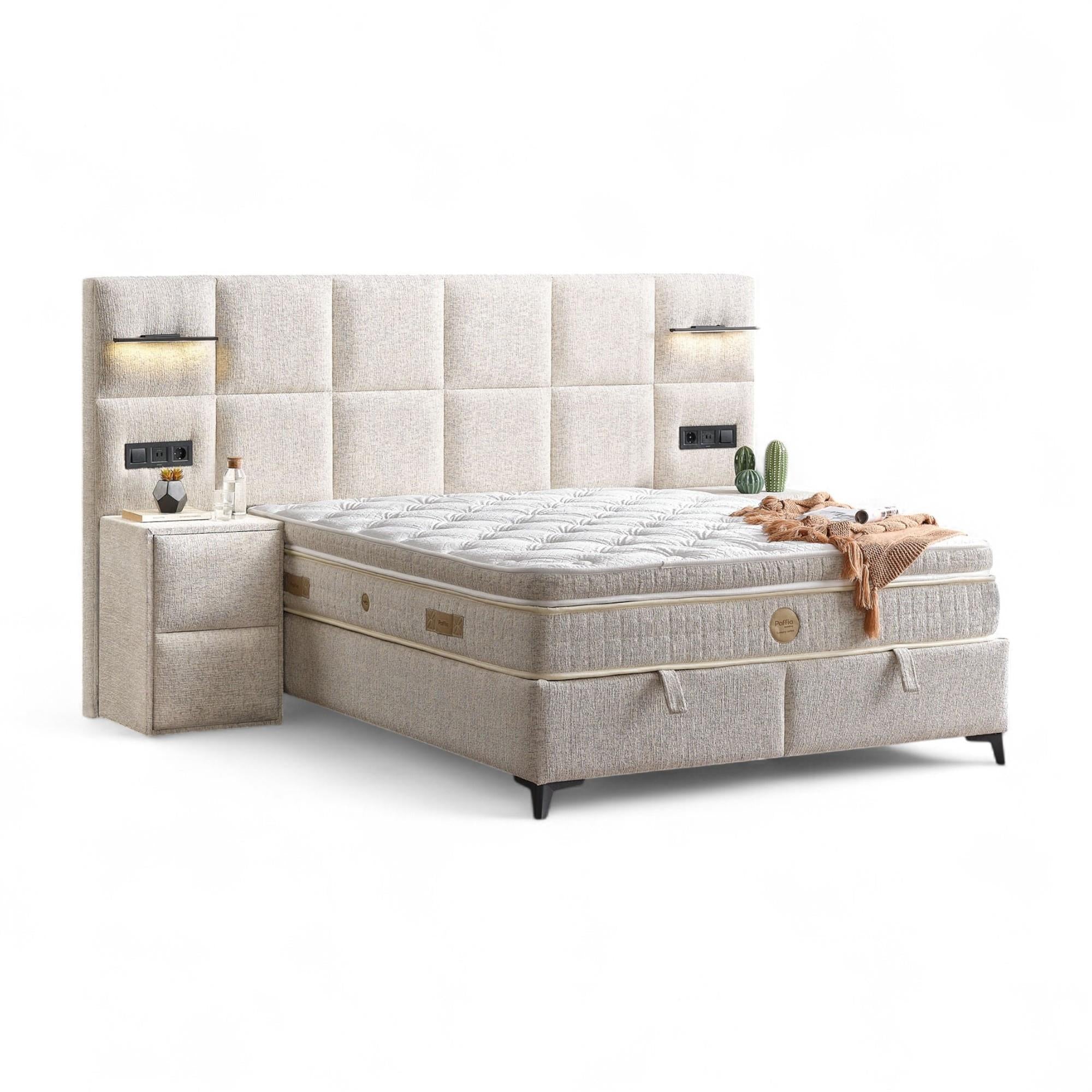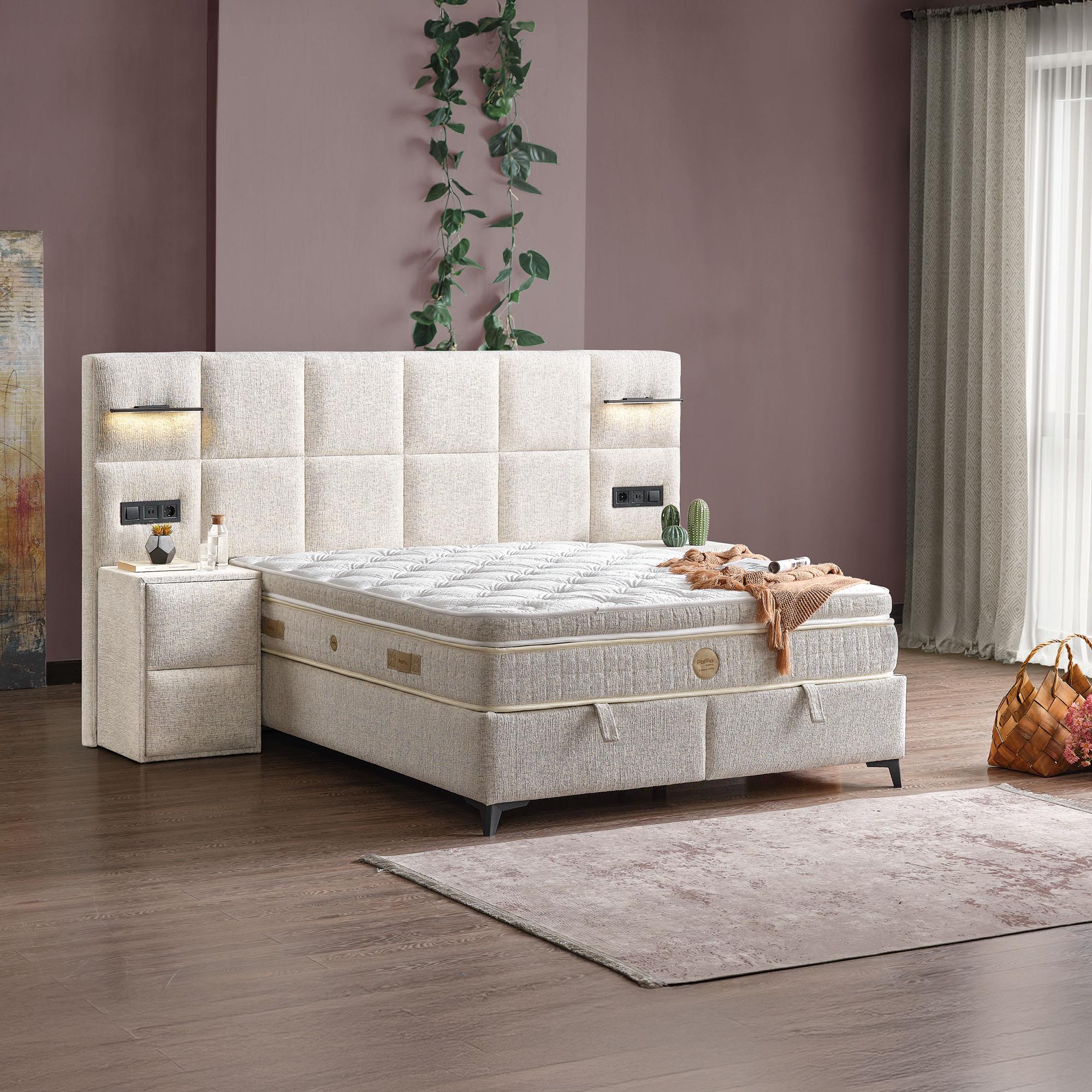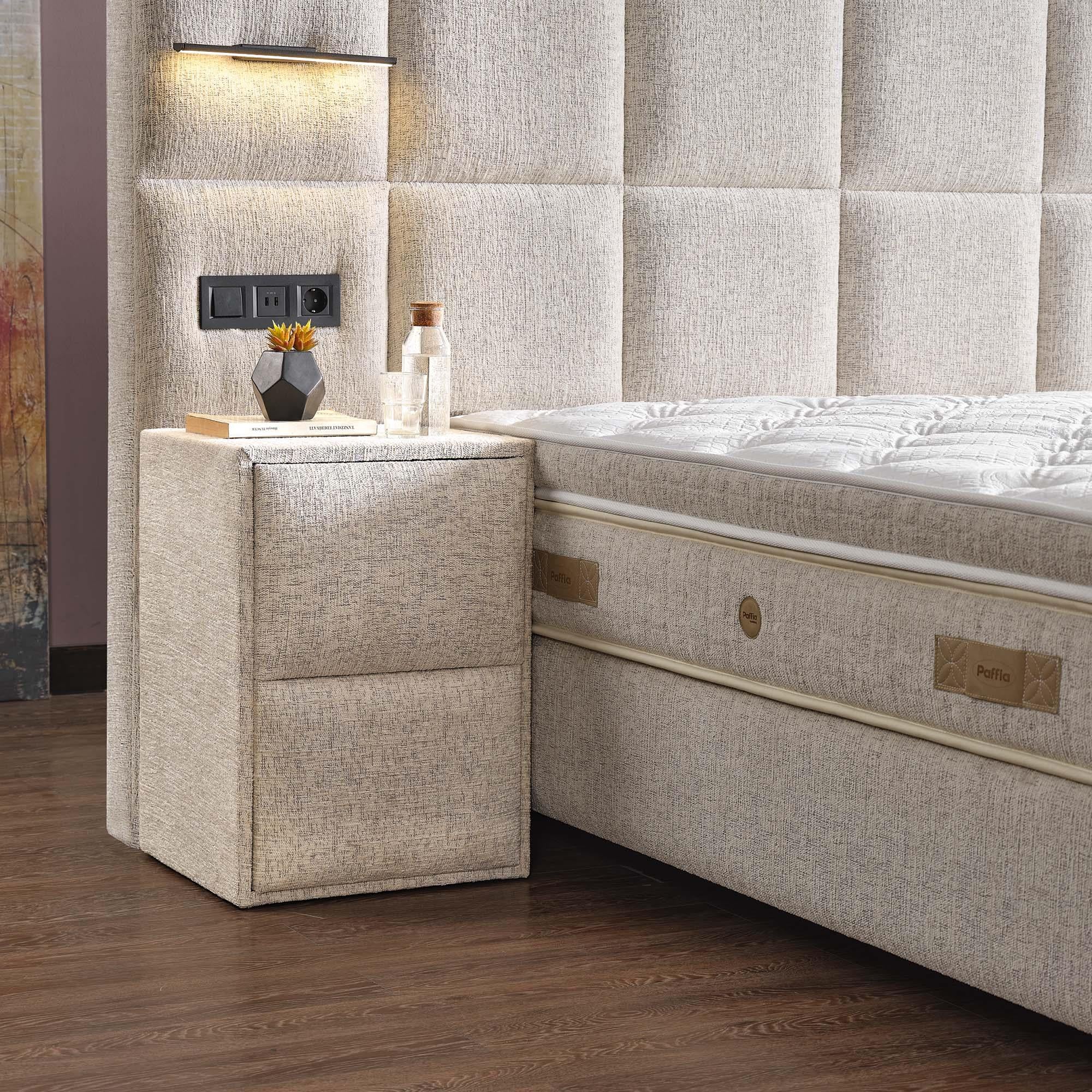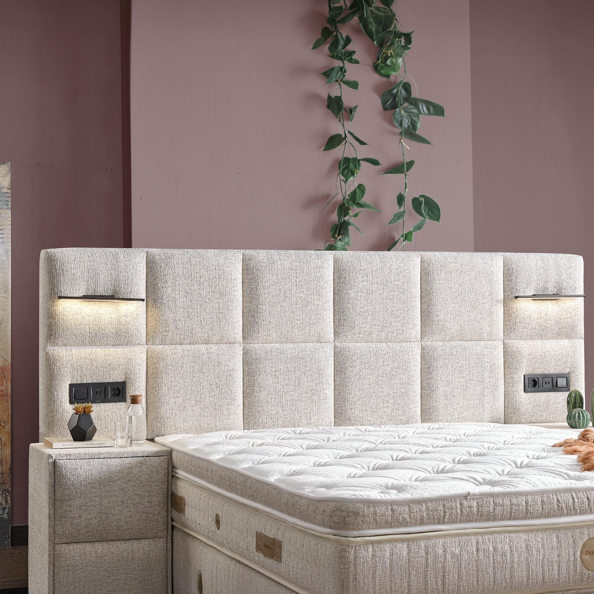 Polaris Set, WellSoft kumaşın zarif görünümünü gelişmiş Pocket Spring Sistemi ile birleştirir. 2 adet USB şarj portu, priz ve ambiyans LED ışığıyla ihtiyaç duyduğunuz her şey başucunuzdadır; modern çizgisiyle odanızda bütünlüklü bir yatak odası seti deneyimi sunar.