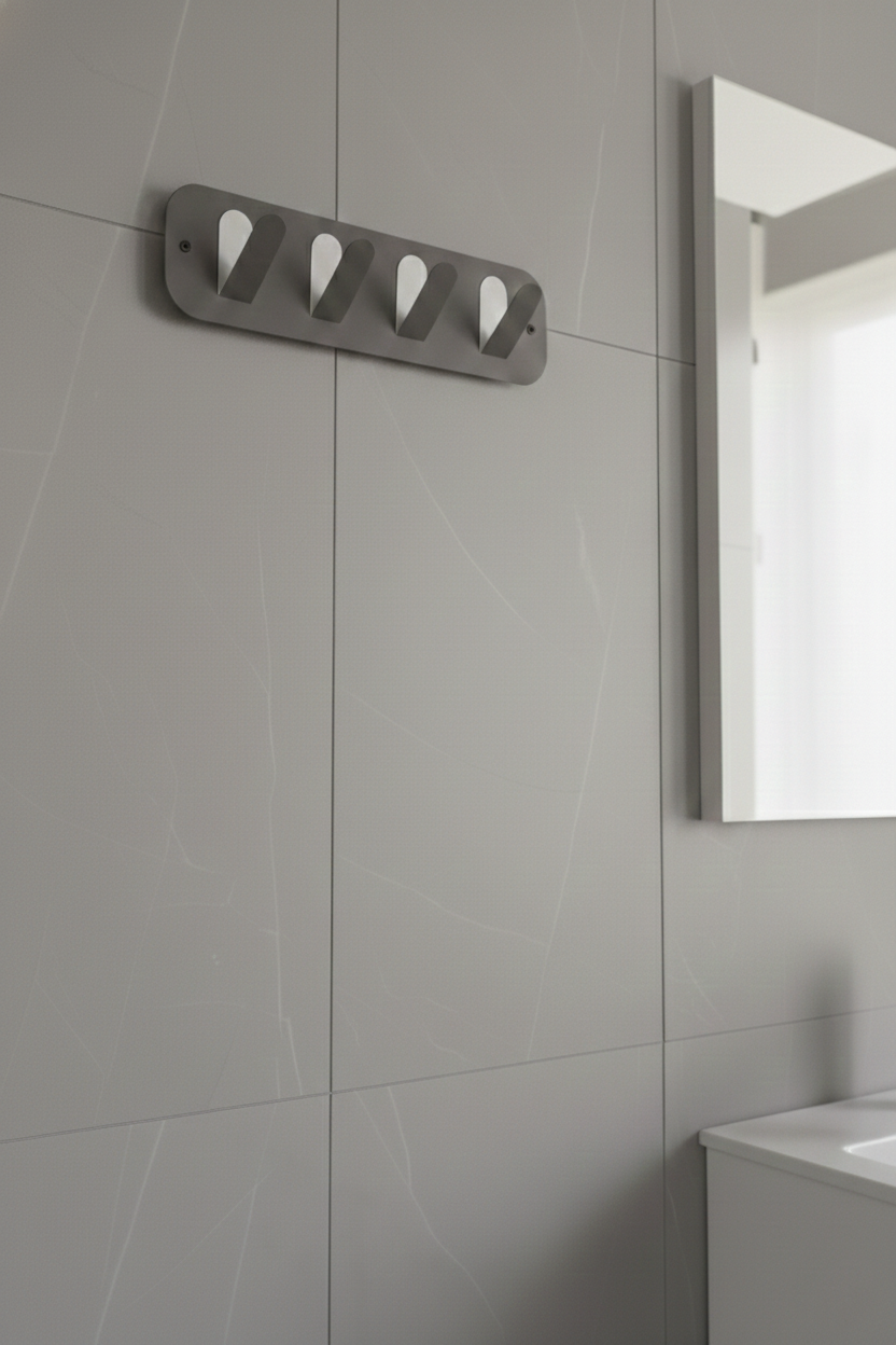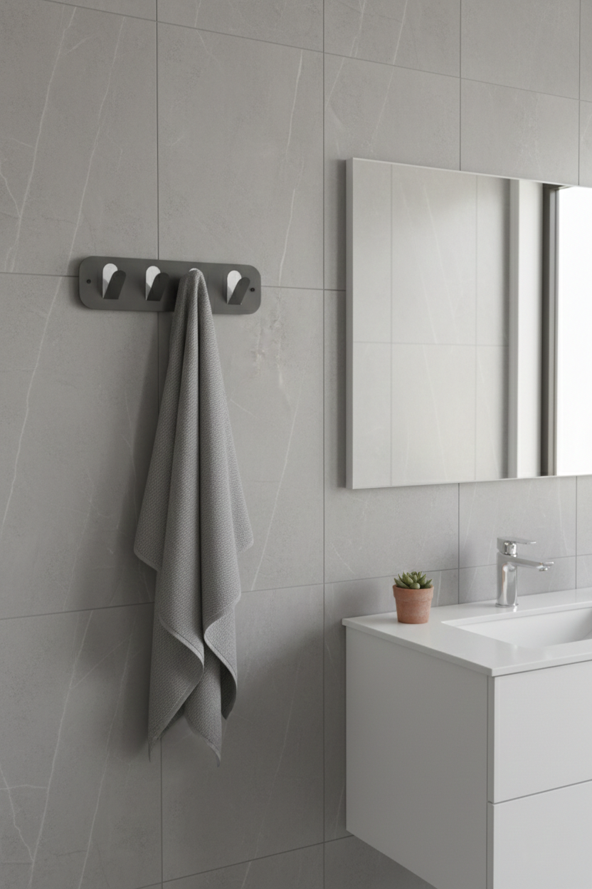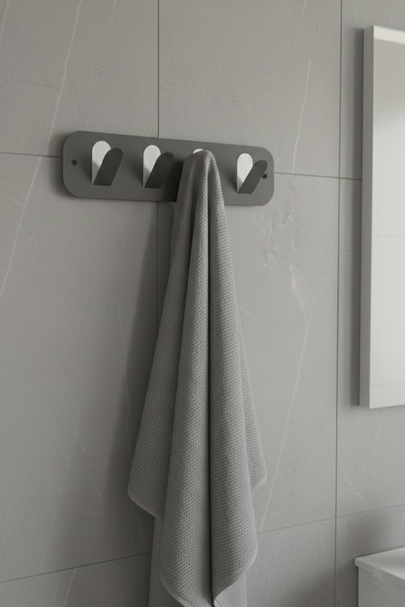 Premium koyu gri galvaniz 4’lü askı, banyoda havlu, bornoz ve kişisel eşyaları düzenli şekilde asmak için tasarlanmış çoklu duvar askısı çözümüdür. Galvaniz kaplamalı sağlam yapısı ve minimalist tasarımı sayesinde nemli ortamlarda uzun ömürlü kullanım sunar, kalabalık alanlarda düzenli ve modern bir görünüm oluşturur. Günlük kullanım eşyalarının düzenli şekilde asılmasının istendiği farklı yaşam alanlarında pratik bir çözüm sunar. Tekli askılara göre, aynı alanda daha fazla eşya asma imkanı sunarak alan kullanımını daha verimli hale getirir. Bu askı nemli banyolarda paslanır mı? Her kanca ağır eşyaları taşıyabilir mi? Sadece banyoda mı kullanılabilir?Öne Çıkan Özellikler