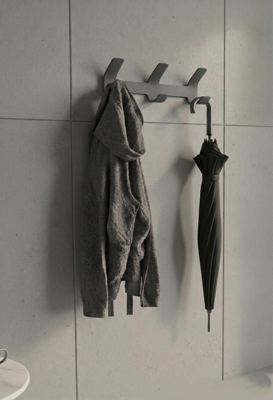Premium Seri Üçlü Metal Askı Koyu Gri, özellikle dar alanlarda düzenli bir asma çözümü istenen banyo, antre ve giriş bölümlerinde yüksek verim sağlar. Günlük kullanılan eşyaların kolay erişilebilir biçimde konumlandırılmasına yardımcı olur.