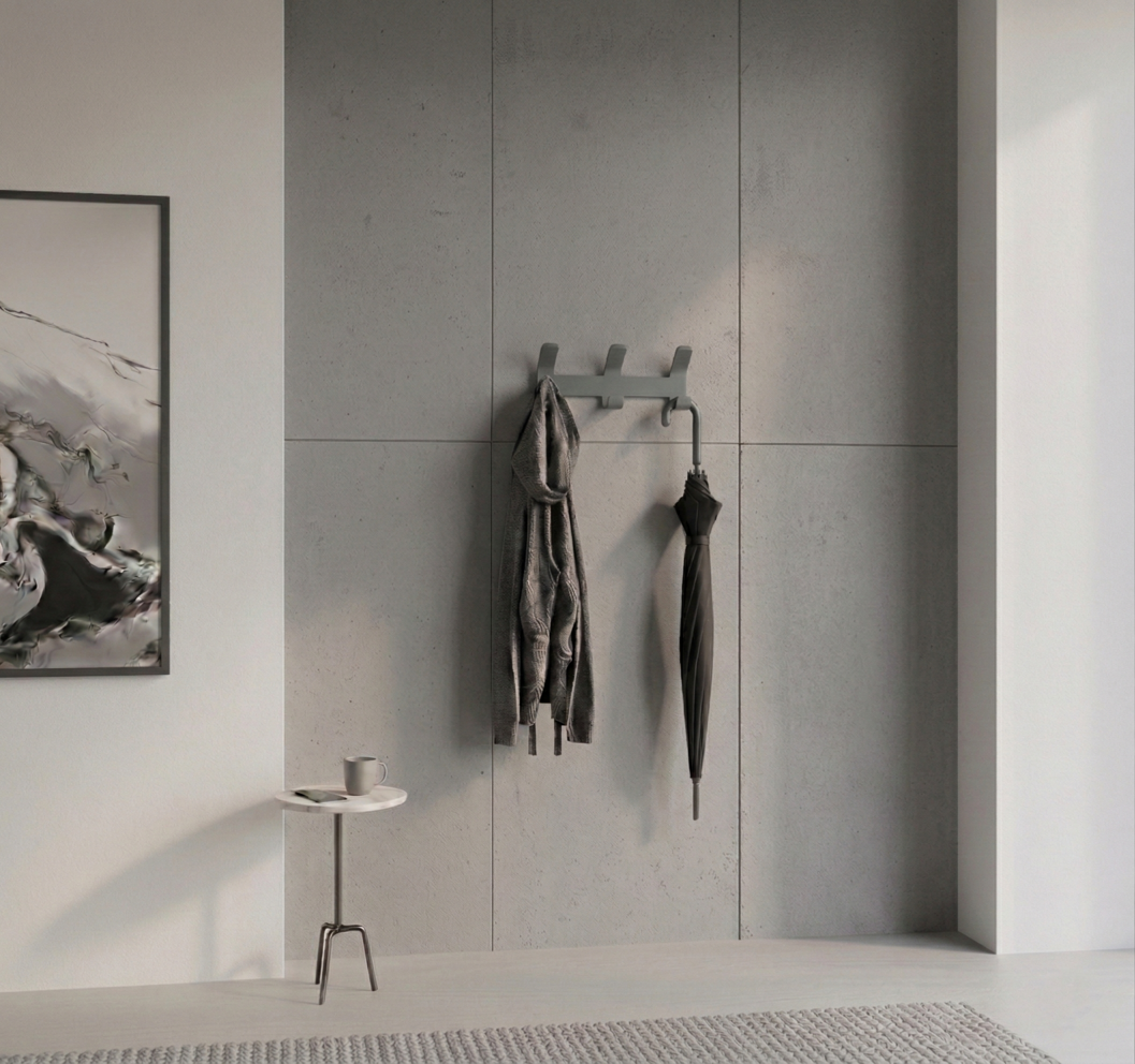 Premium Seri Üçlü Metal Askı Koyu Gri, düzen, dayanıklılık ve modern görünümü bir araya getirerek yaşam alanlarında şık ve işlevsel bir kullanım sunar.