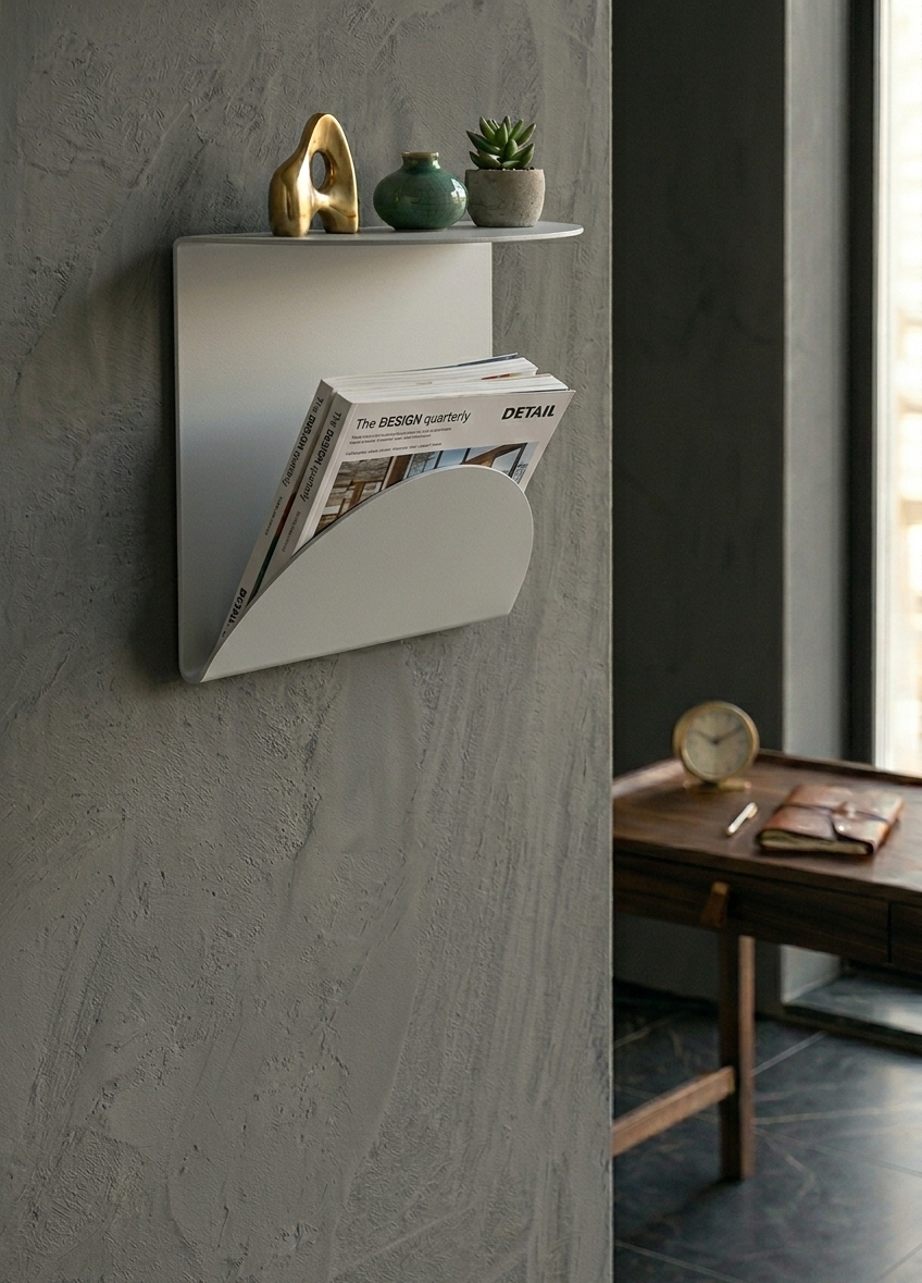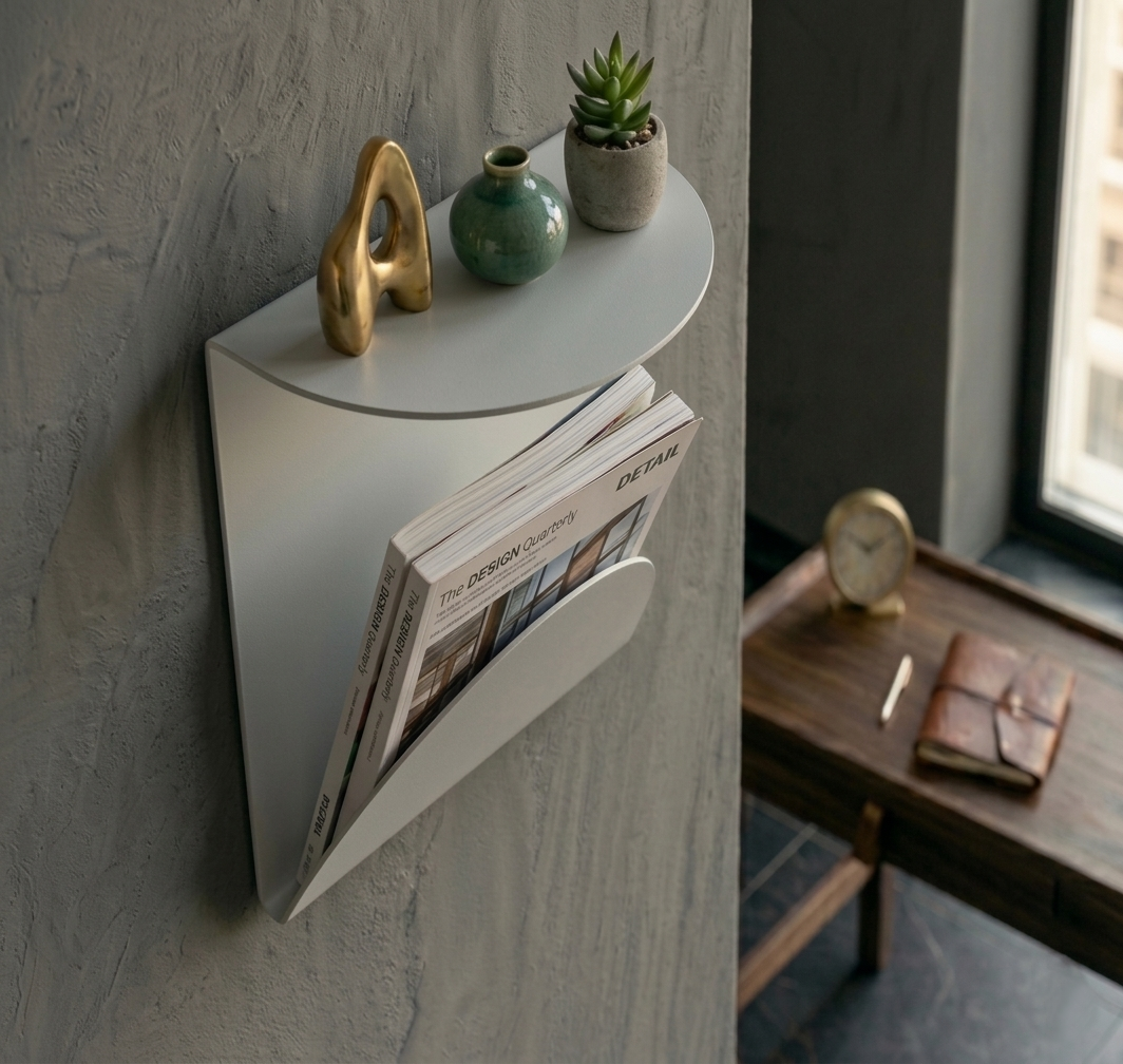 Premium Seri Metal Dergilik Duvar Rafı Açık Gri, özellikle modern dekorasyon anlayışına sahip yaşam alanlarında, hem dekoratif ürünleri hem de dergi ve kitapları düzenli biçimde sergilemek istendiğinde yüksek verim sağlar.