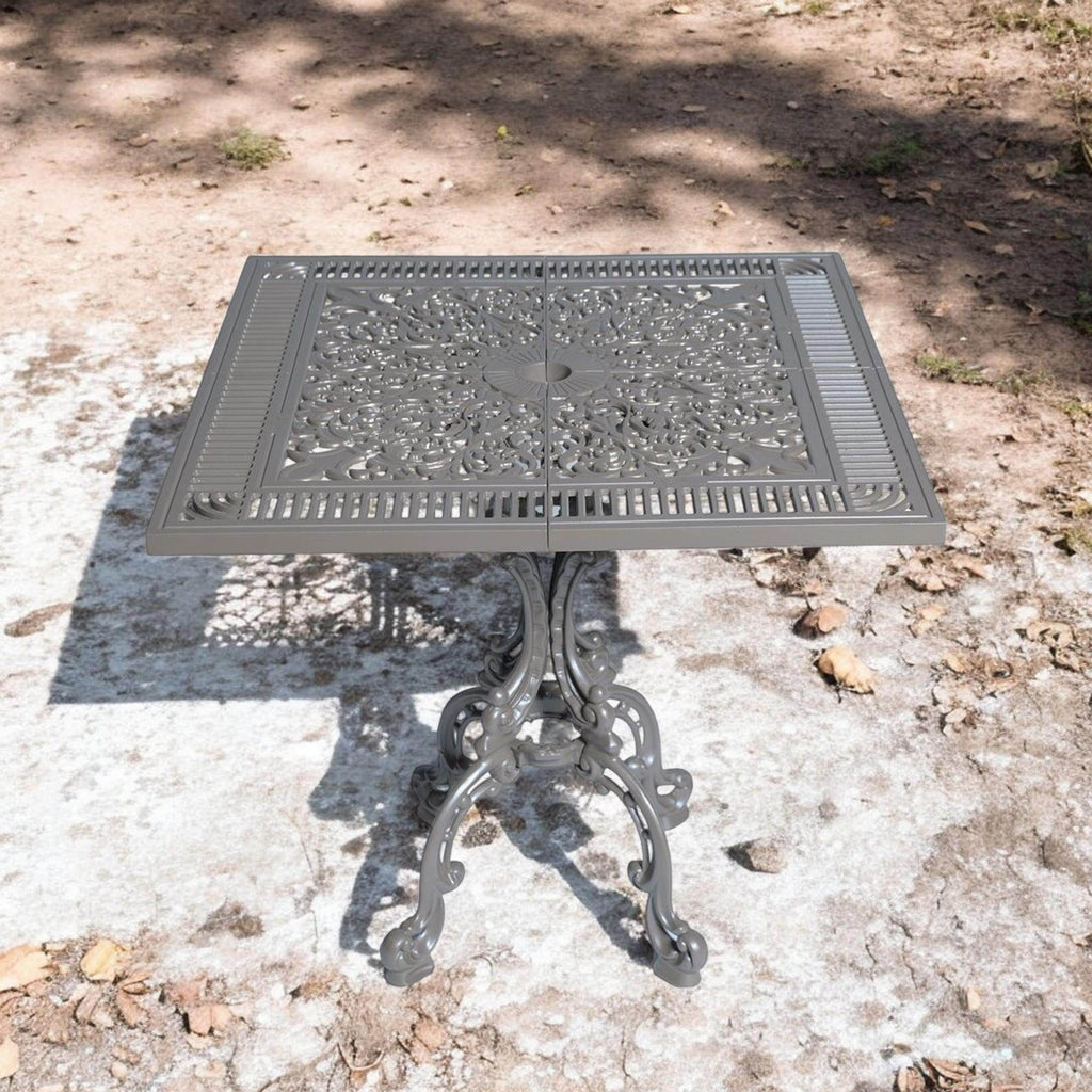 Fabrikamızda özenle tasarlanan ve üretilen bu masa, alüminyum enjeksiyon döküm teknolojisi ile parça parça üretilip, sonrasında montajlanır. Dayanıklılığın ve zarafetin mükemmel bir karışımı olarak, boya öncesi her ürünün kumlama işlemiyle yüzey temizliği yapılır ve boyanın uzun ömürlü olması için elektrofosfat kaplama uygulanır. Bahçenizde, balkonunuzda ya da açık hava mekanlarınızda yıllar boyunca güvenle kullanabilmeniz için masa, elektrostatik toz boya ile boyanmıştır.