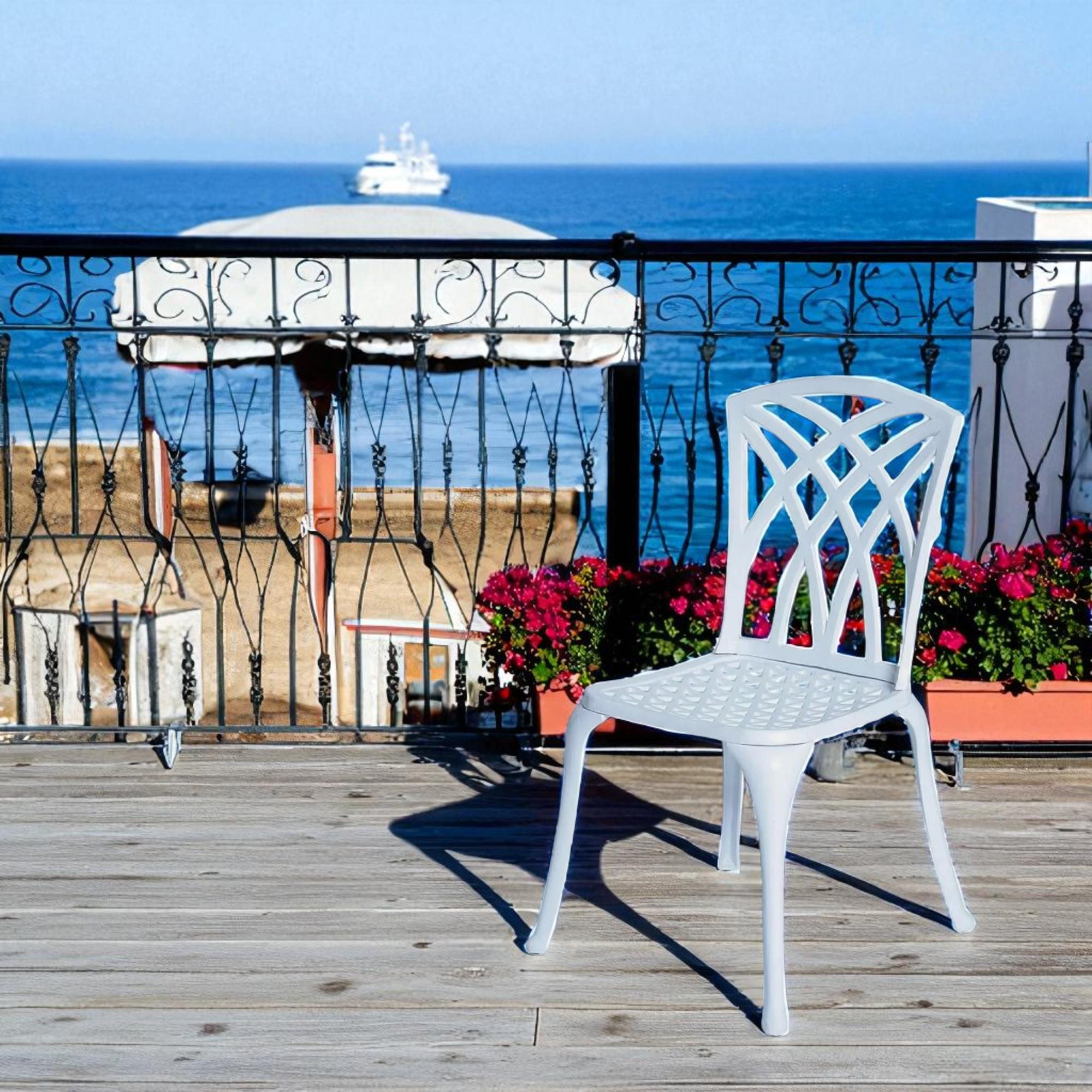 Bu zarif ve dekoratif desenli alüminyum sandalye, dış mekanlarda şıklık ve dayanıklılık arayanlar için ideal bir üründür. Parça parça üretilen sandalye, alüminyum döküm ile fabrikamızda titizlikle monte edilmektedir. Üretim öncesi kumlama işlemi ile yüzey temizliği yapılır ve boya koruması için elektrofosfat kaplama uygulanır. Dış mekan kullanımına uygun olan sandalye, elektrostatik toz boya ile boyanarak uzun ömürlü bir koruma sağlar.