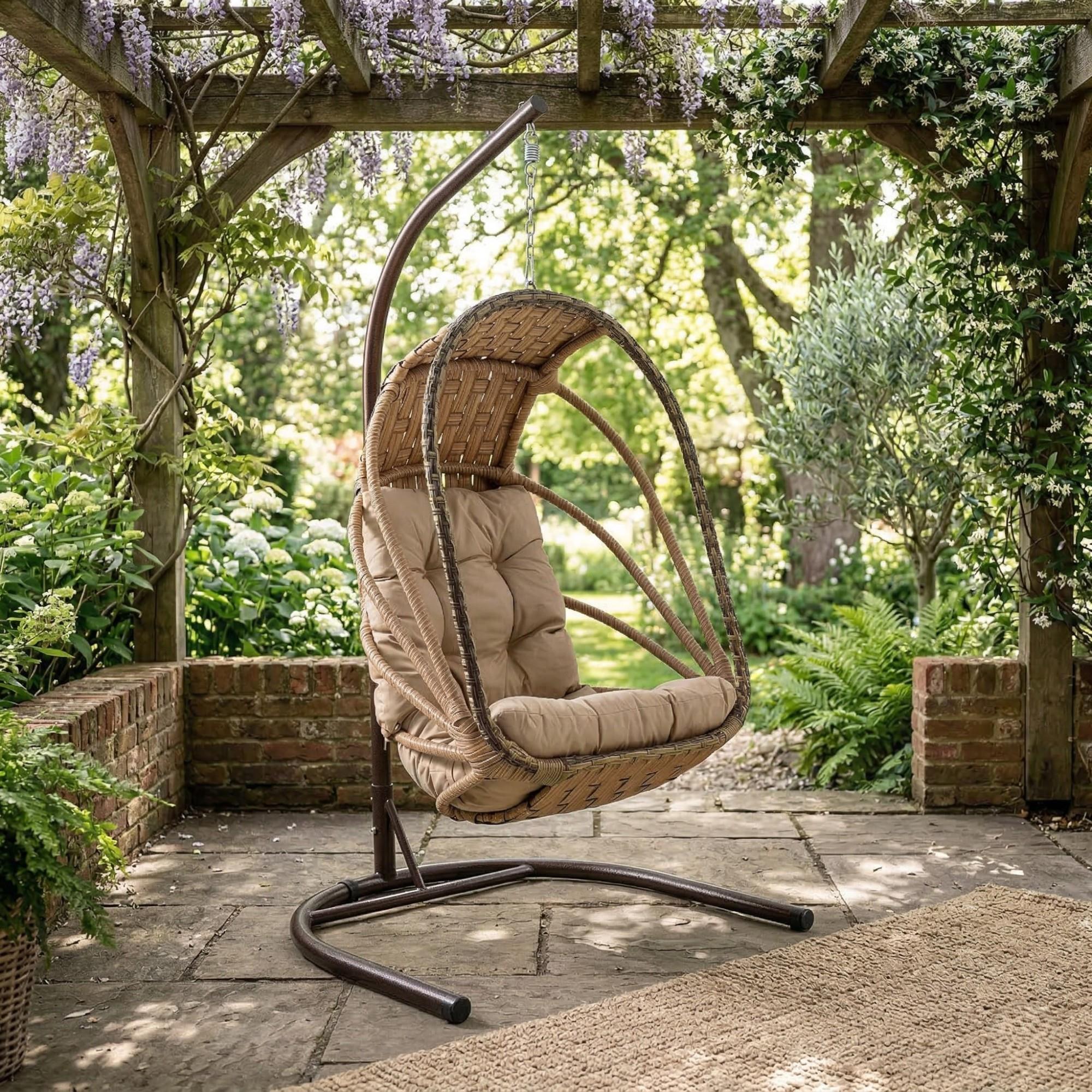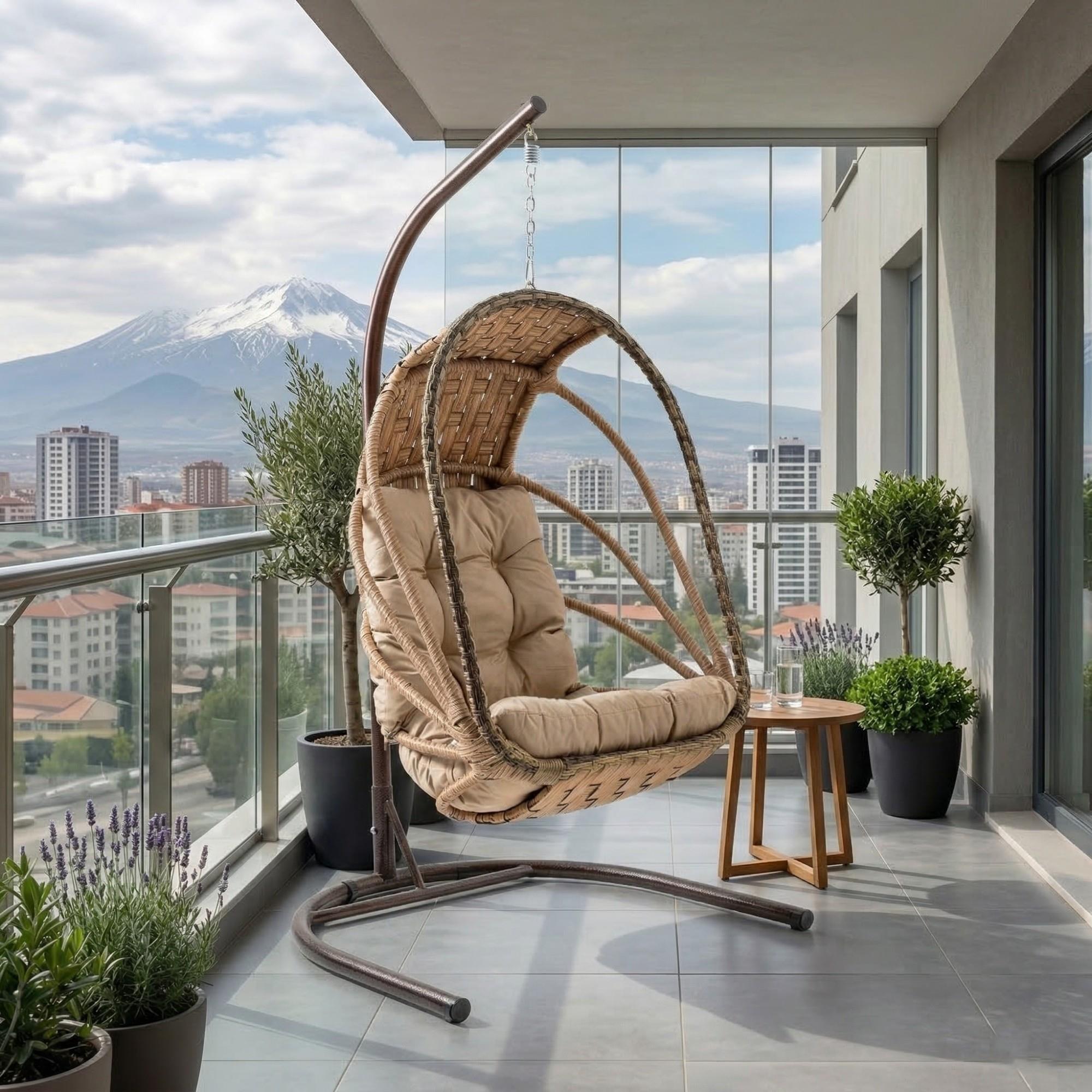 Rehome Enez Tek Kişilik Rattan Bahçe Salıncağı, dış mekânda konfor, dayanıklılık ve estetik görünümü bir arada sunan güvenilir bir bahçe salıncağı çözümüdür.