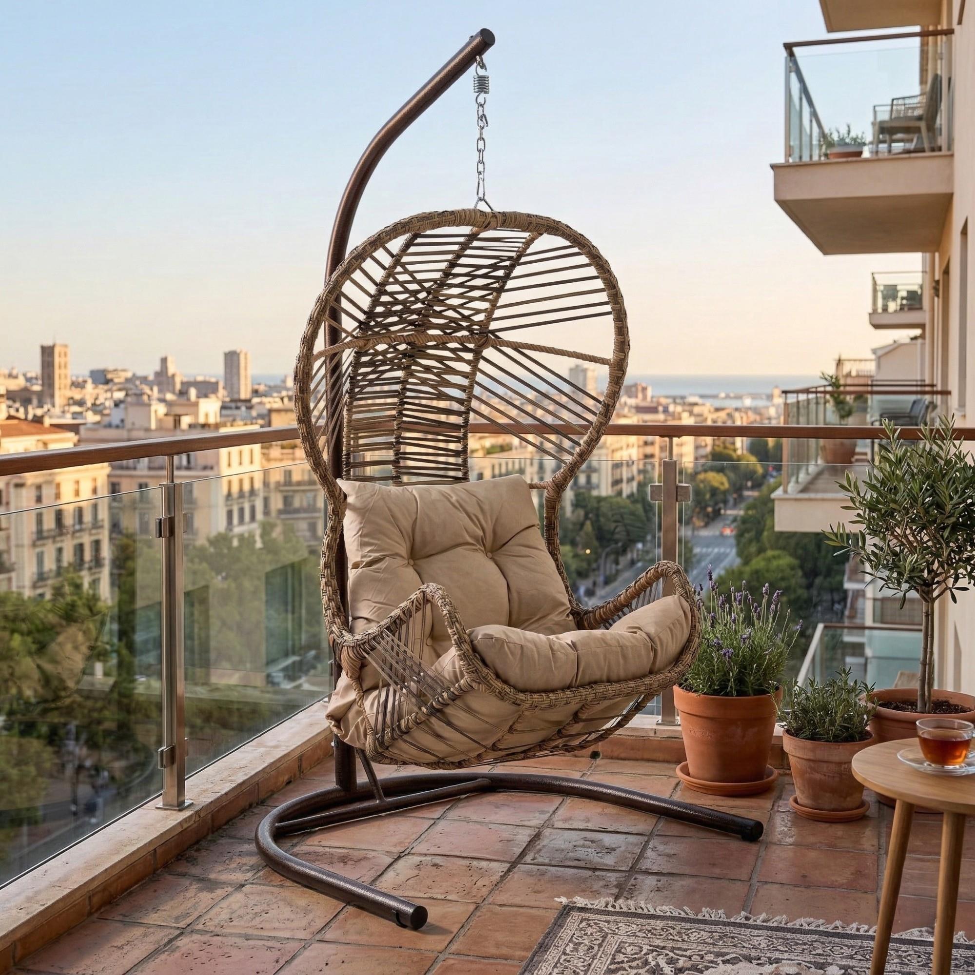 Rehome Erdek Tek Kişilik Rattan Bahçe Salıncağı, bahçe/balkon gibi dış mekânlarda düzenli kullanım için yüksek verim sağlar. UV dayanımlı rattan dokusu sayesinde güneş alan alanlarda da formunu korumaya yardımcı olur.