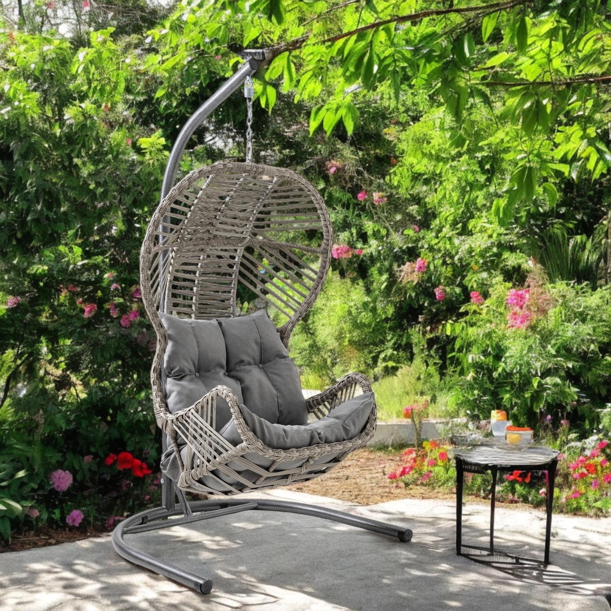 Rehome Erdek Tek Kişilik Rattan Bahçe Salıncağı | Gri