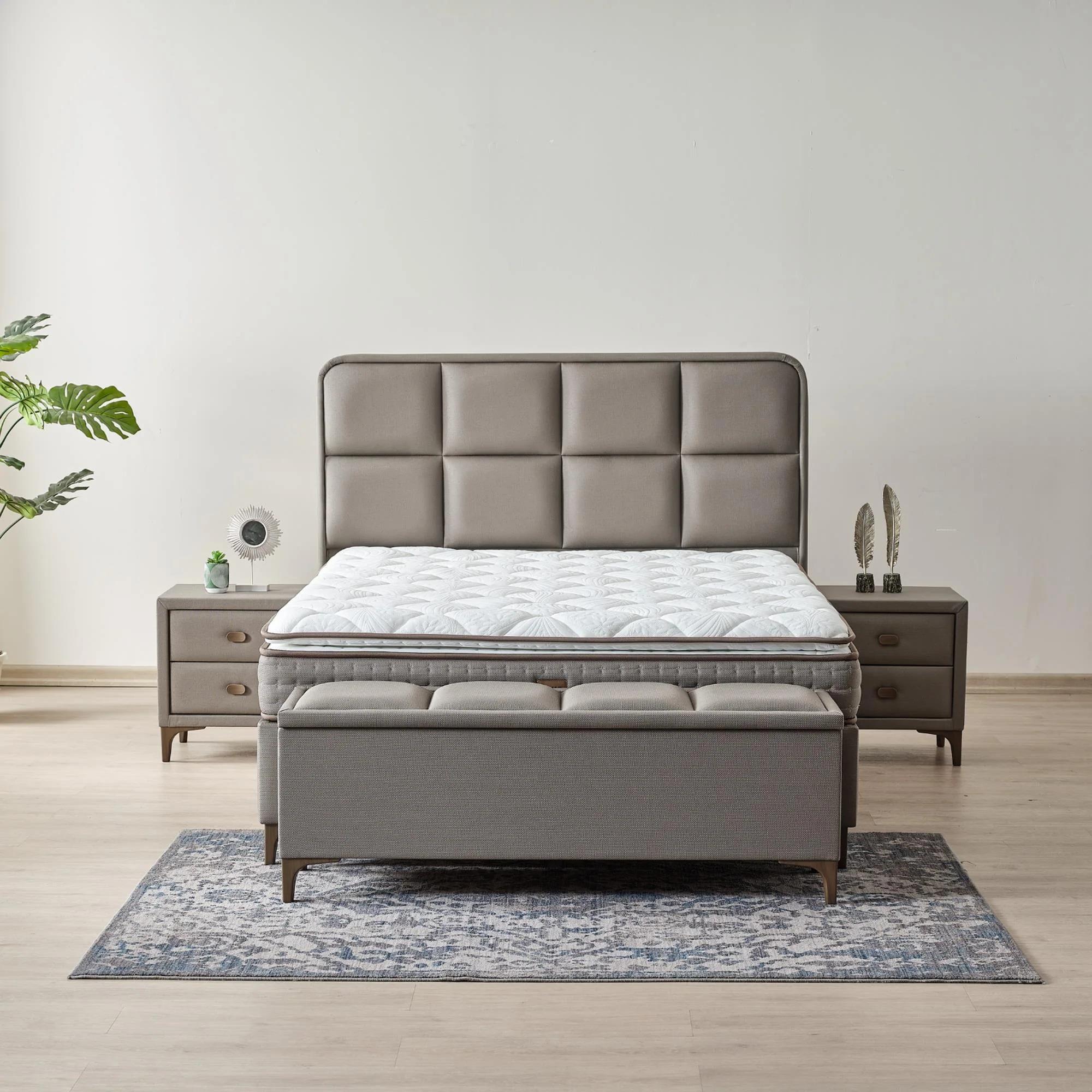 ŞIK TASARIM: Yumuşak dokulu kumaş kaplaması ve estetik detayları ile lüks bir görünüm sunar.