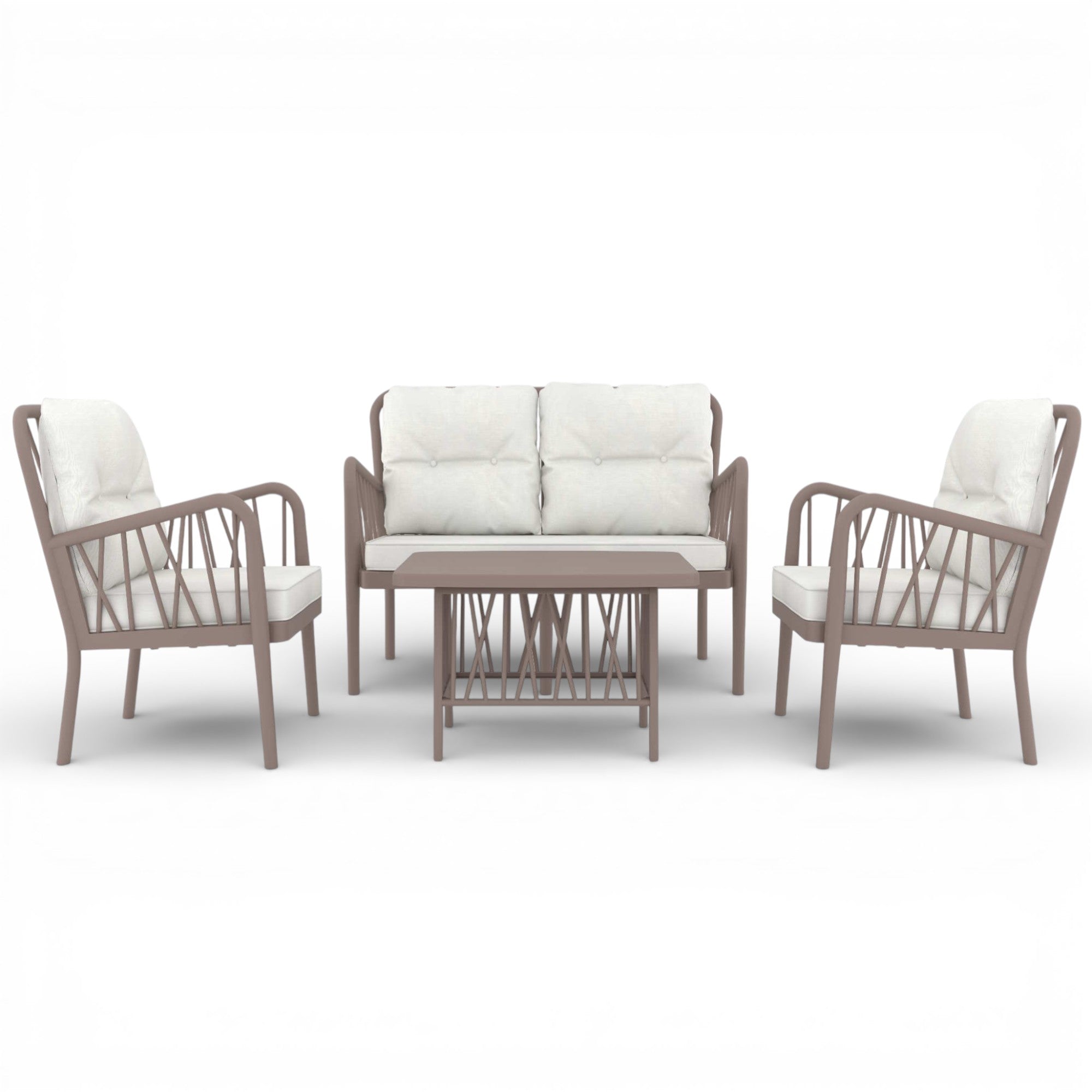 Rehome Gala 2+1+1 Bahçe ve Balkon Oturma Takımı, bahçe, teras ve balkonlarda geniş ve konforlu bir oturma alanı oluşturmak için tasarlanmış 2 tekli koltuk, 1 kanepe ve 1 sehpadan oluşan dış mekân setidir.