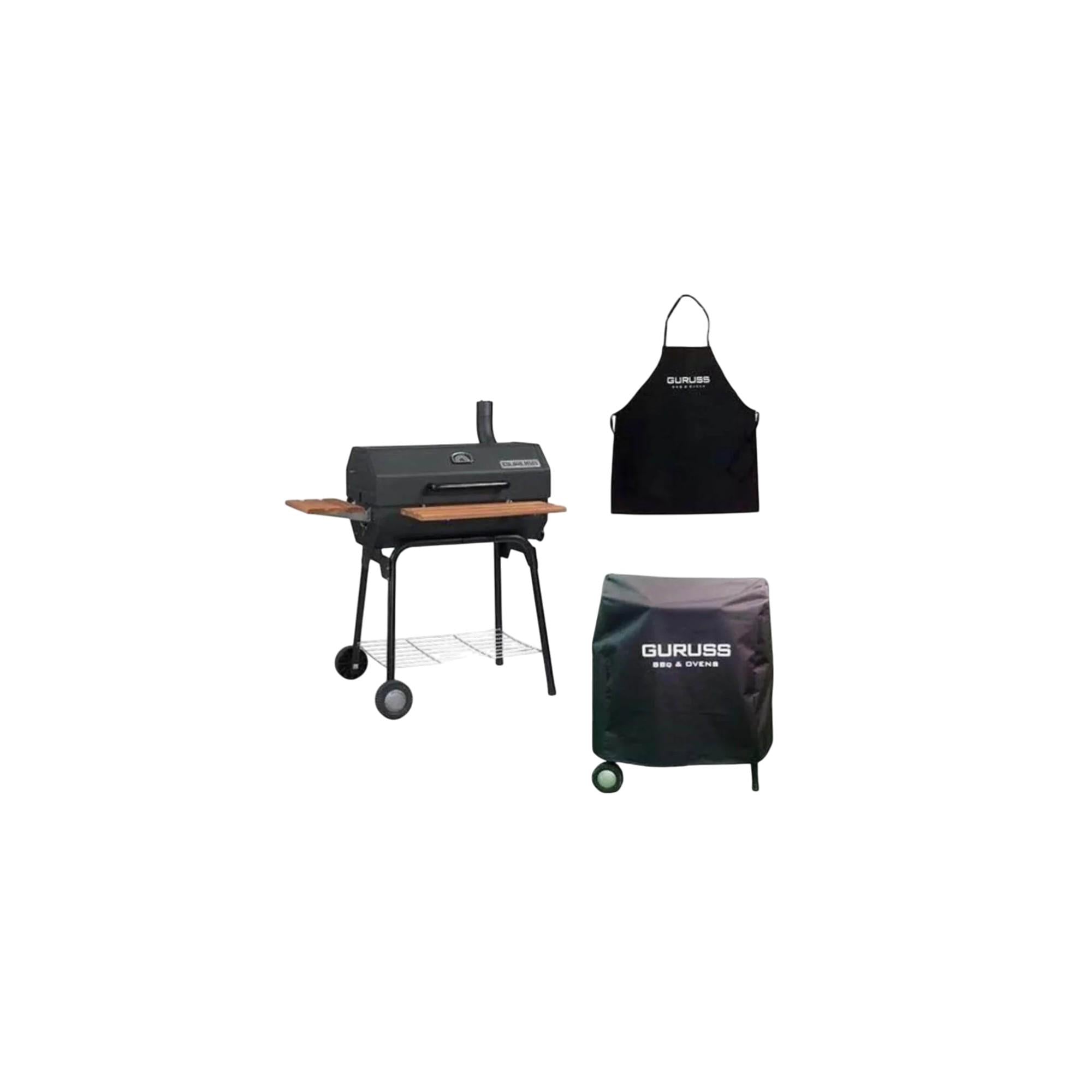 Set içerisinde Guruss CG-075 Kömürlü Barbekü Mangal, 3 adet tel ızgara, koruyucu kılıf ve şef önlüğü yer alır.