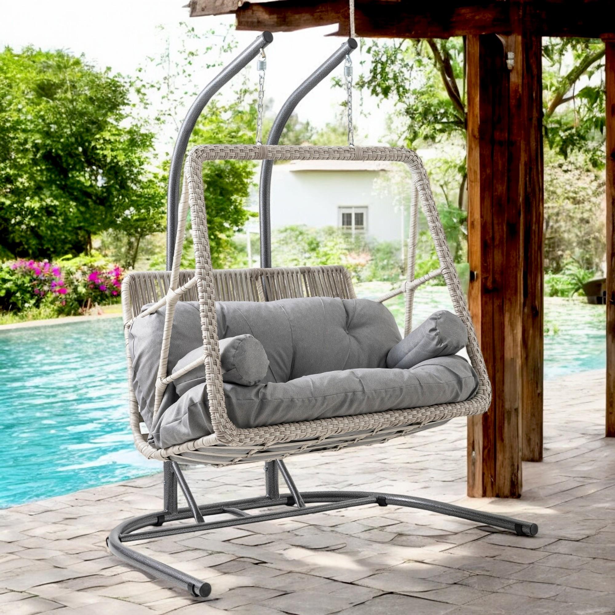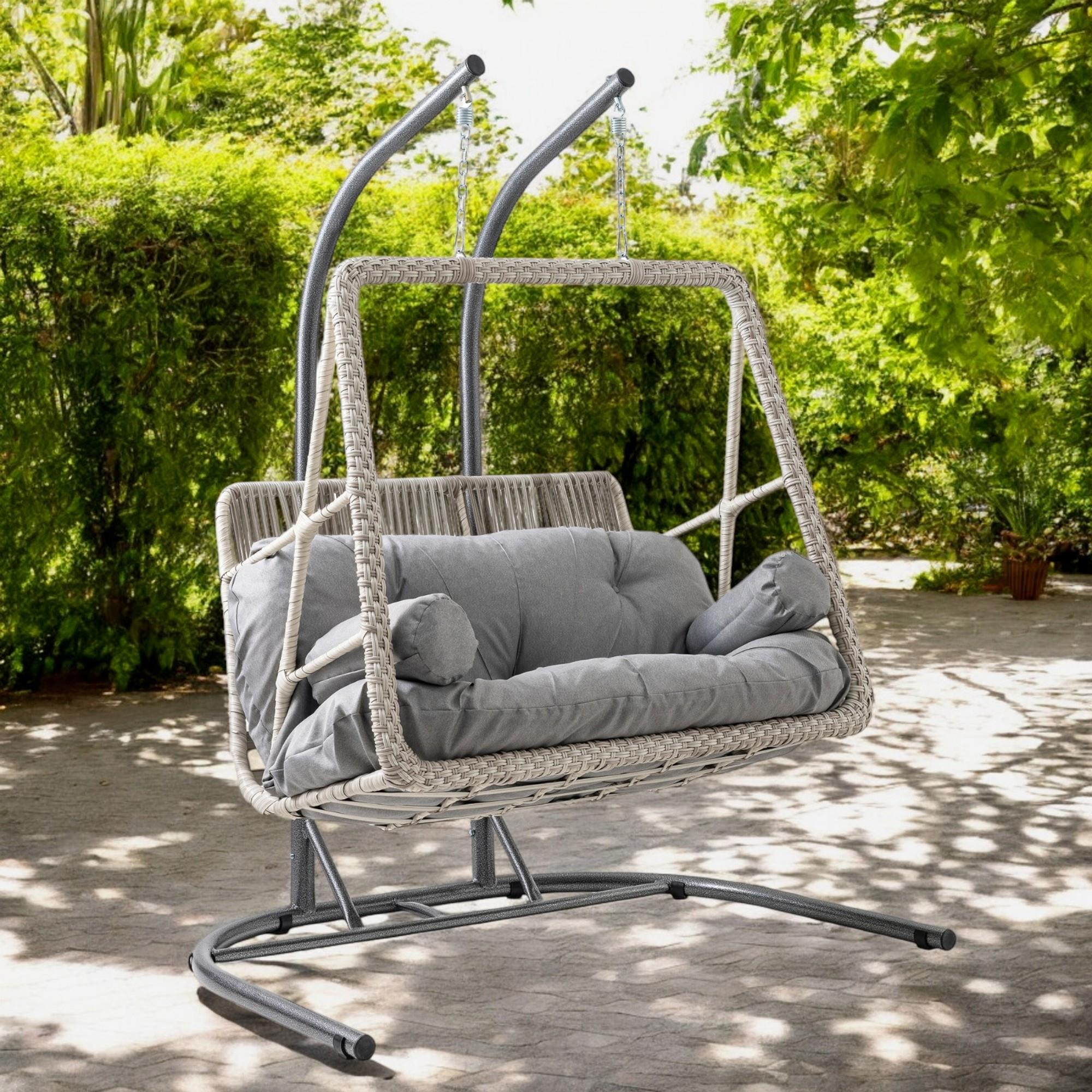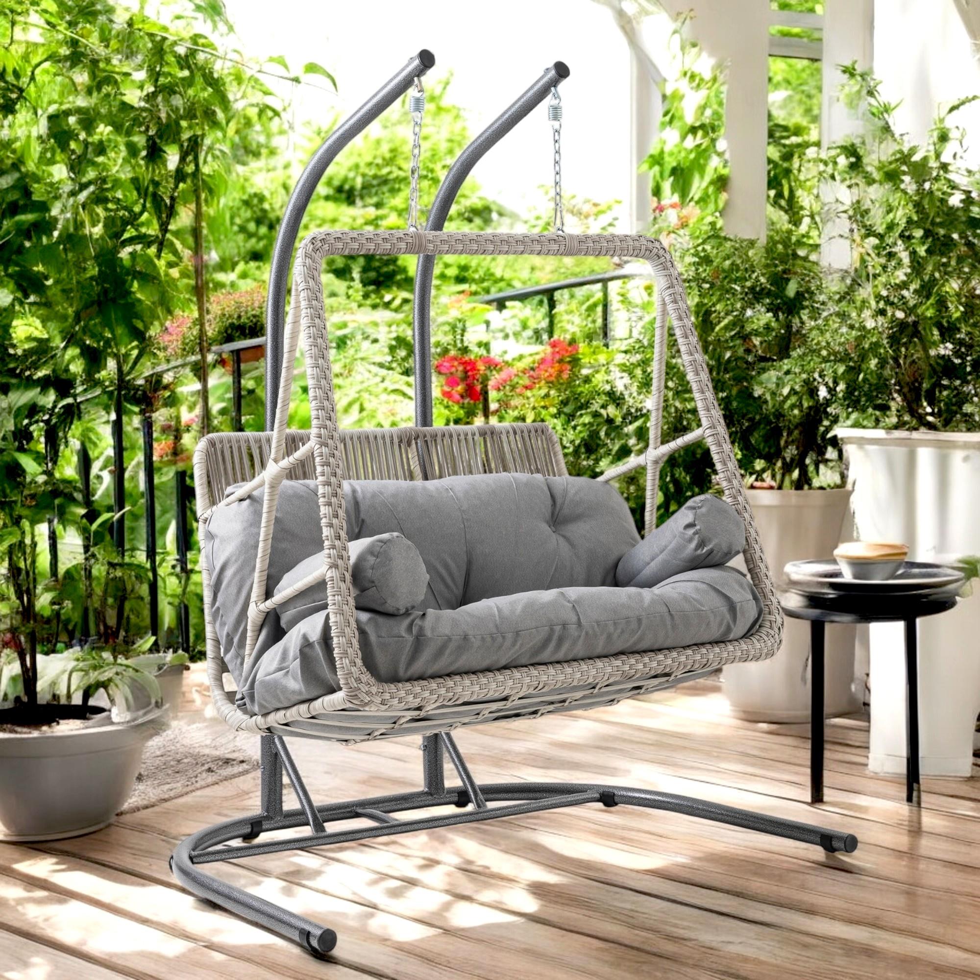 Rehome Hazar Çift Kişilik Rattan Bahçe Salıncağı | Beyaz