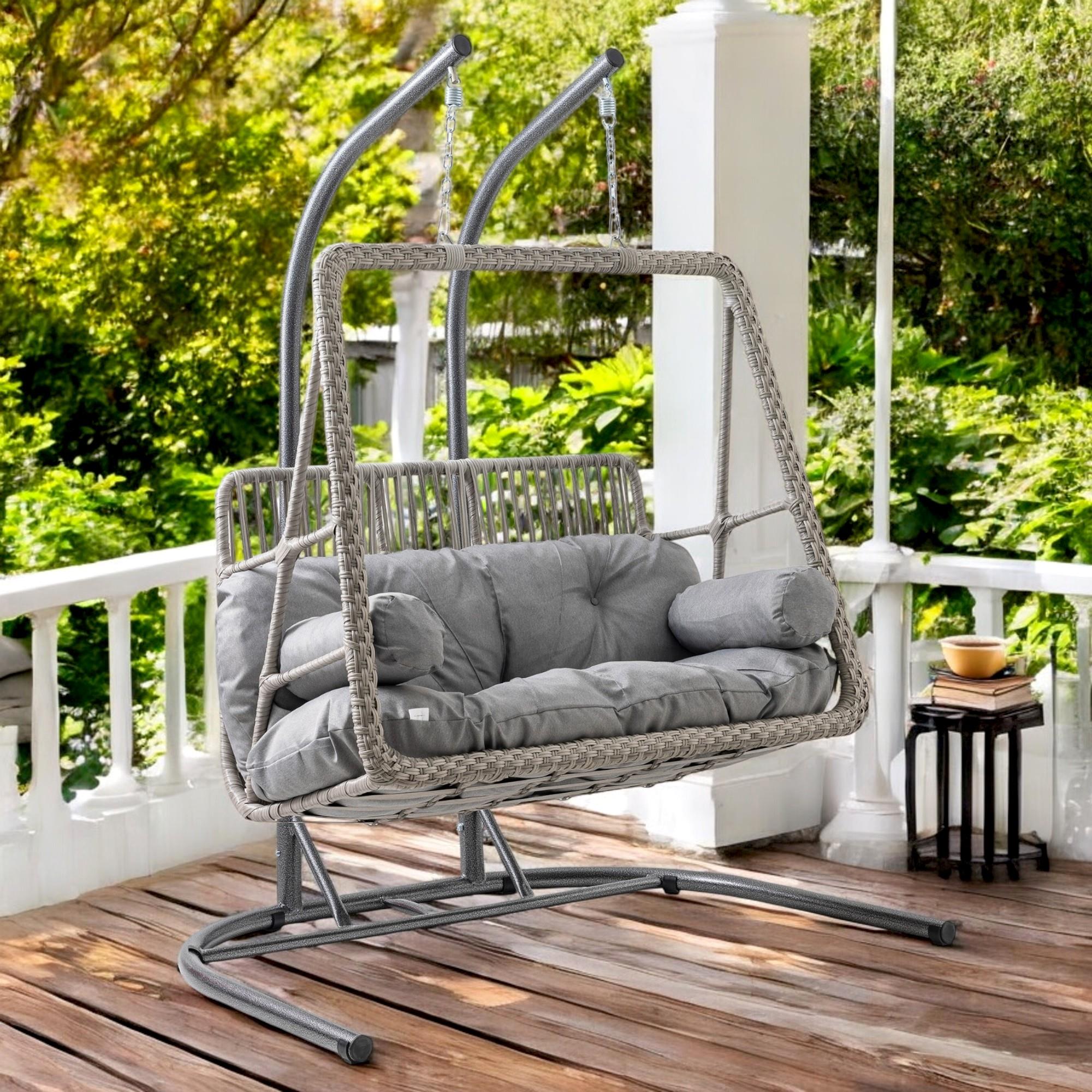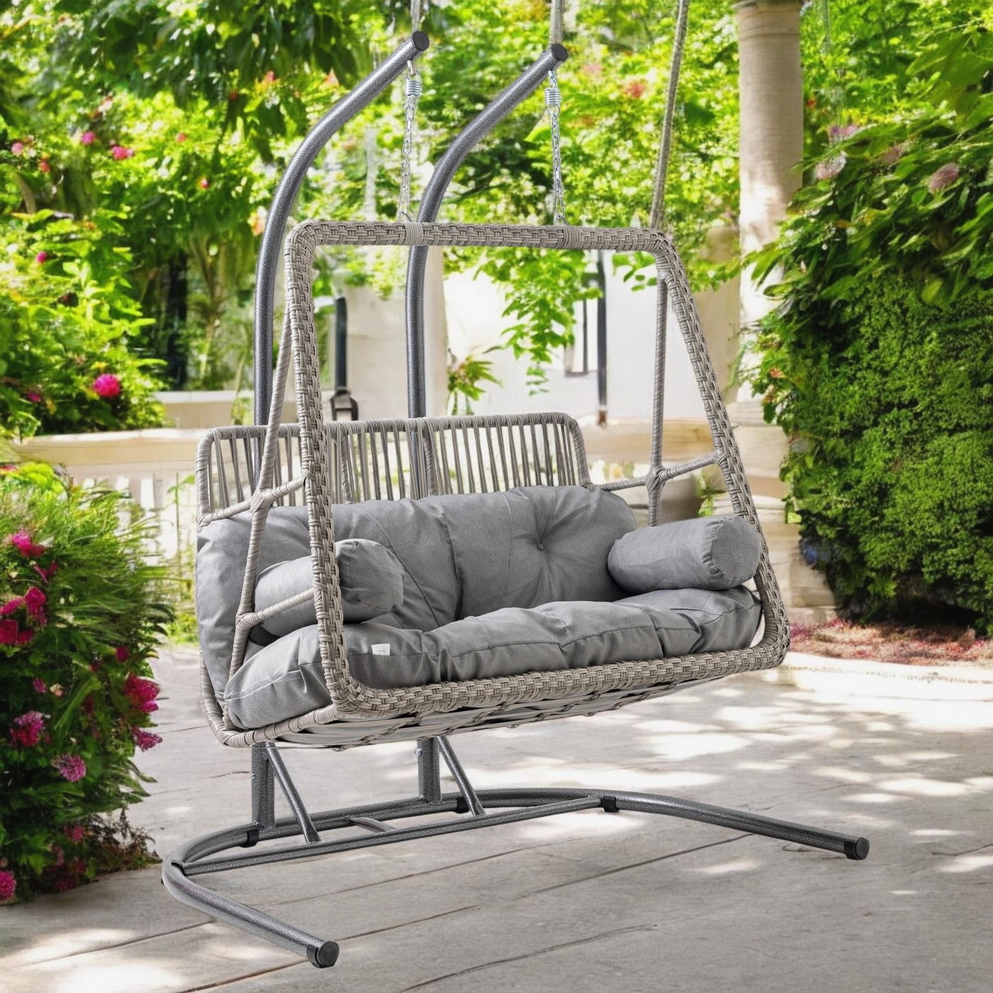 Rehome Hazar Çift Kişilik Rattan Bahçe Salıncağı | Gri