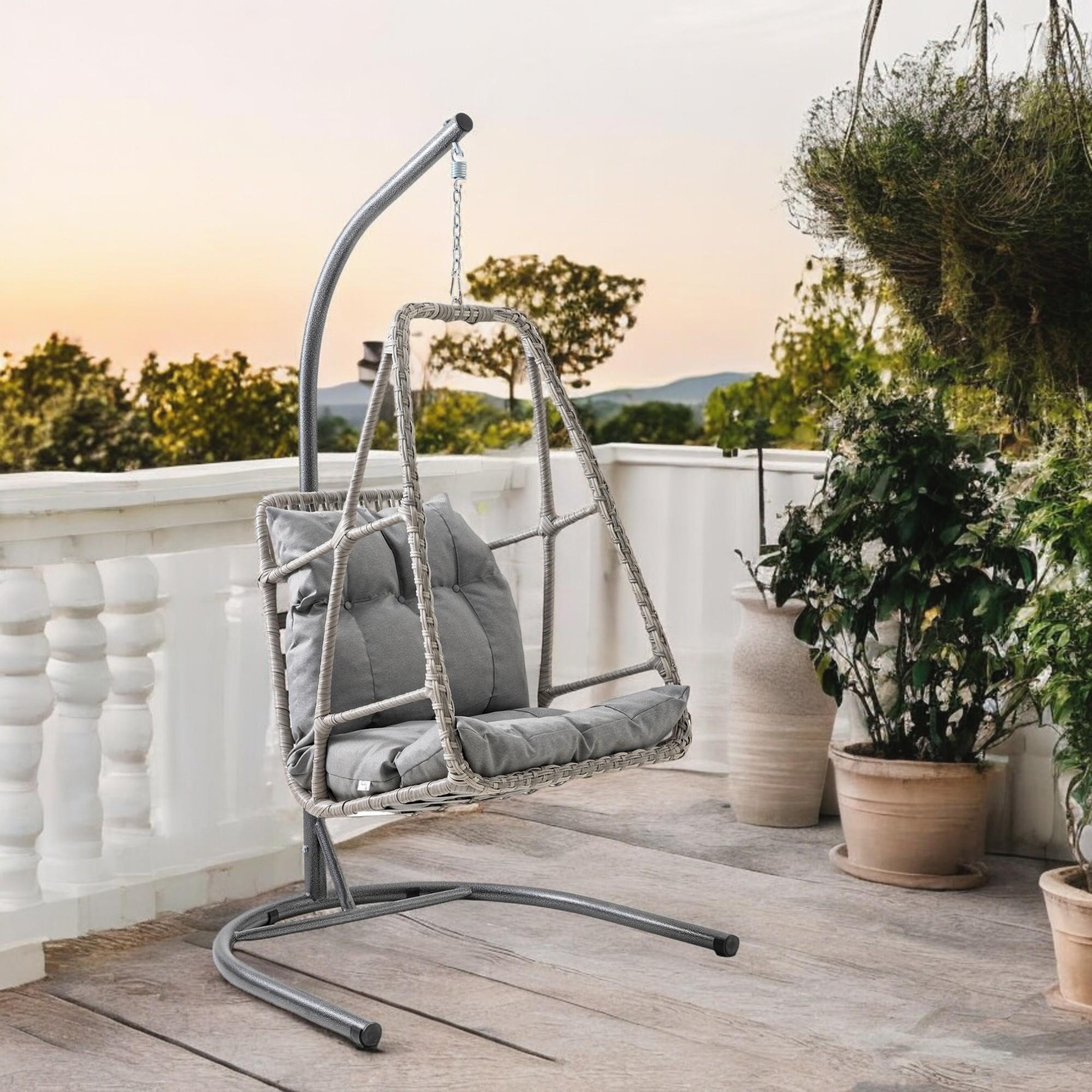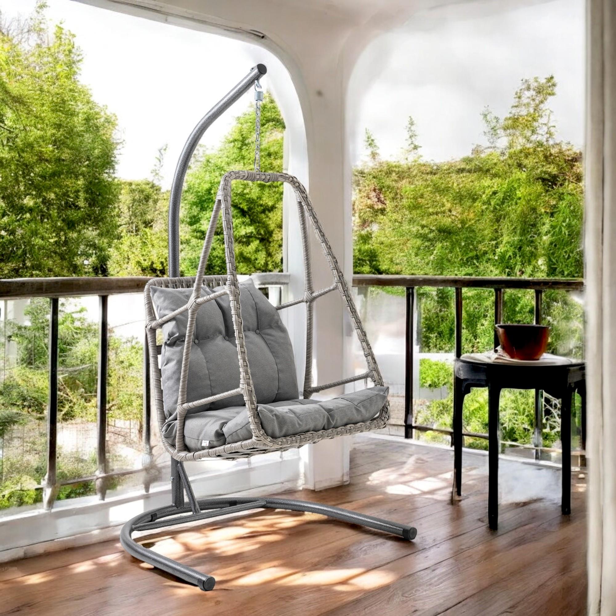 Rehome Hazar Rattan Tekli Bahçe Salıncağı Gri