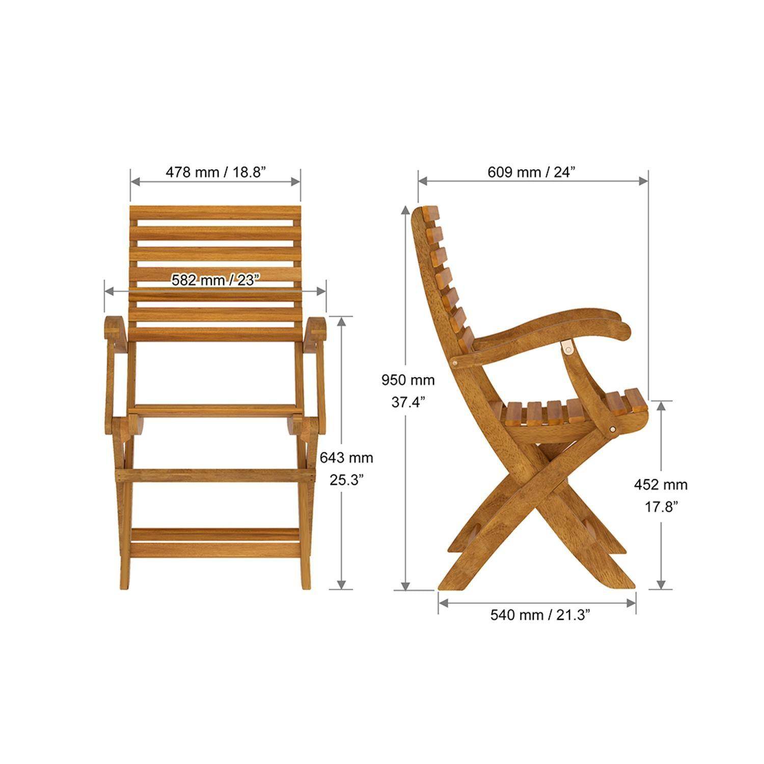 ReHome Interbuild Masif Akasya Ağaç, Casino Koltuk Katlanabilir Dış Mekan Sandalyesi, Altın Tik, 2 Adet