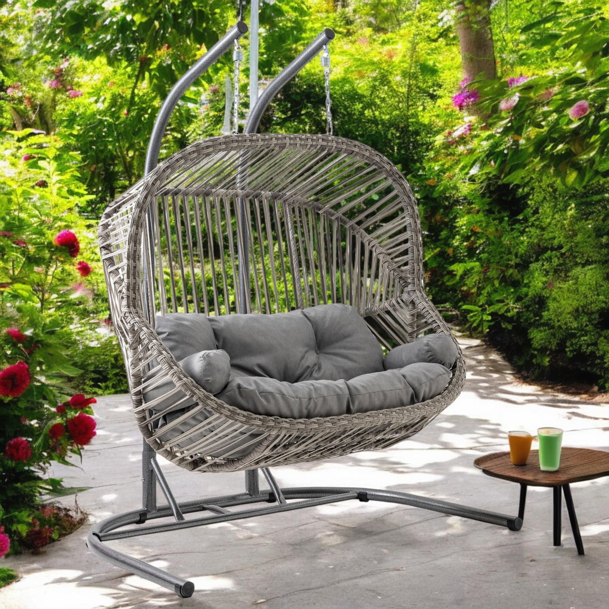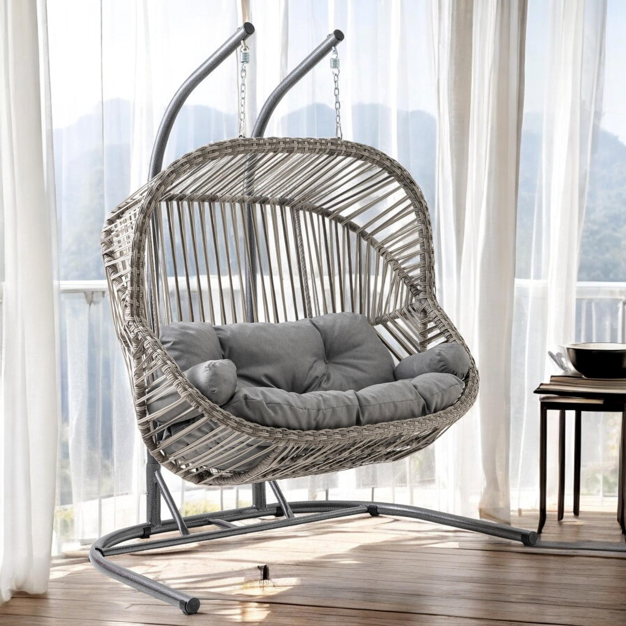 Rehome Kapadokya Çiftli Rattan Bahçe Salıncağı | Gri