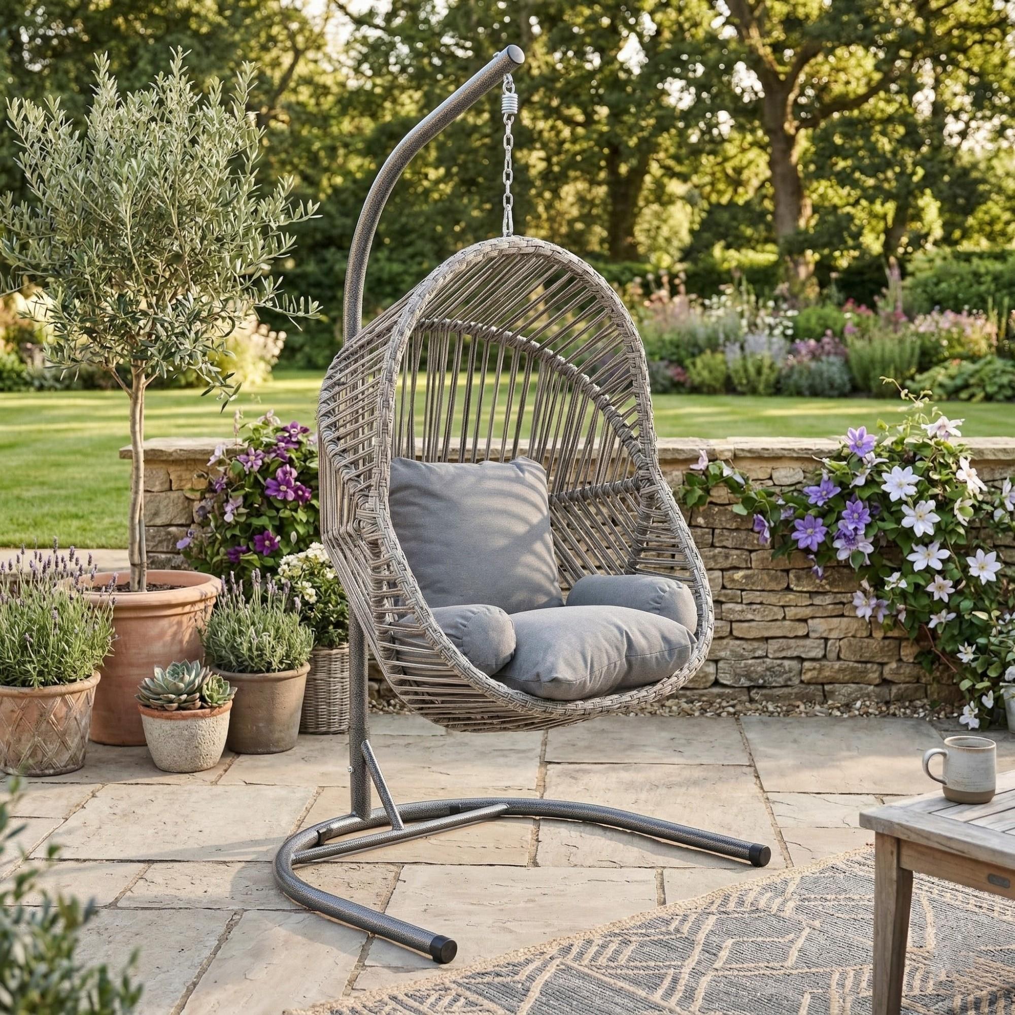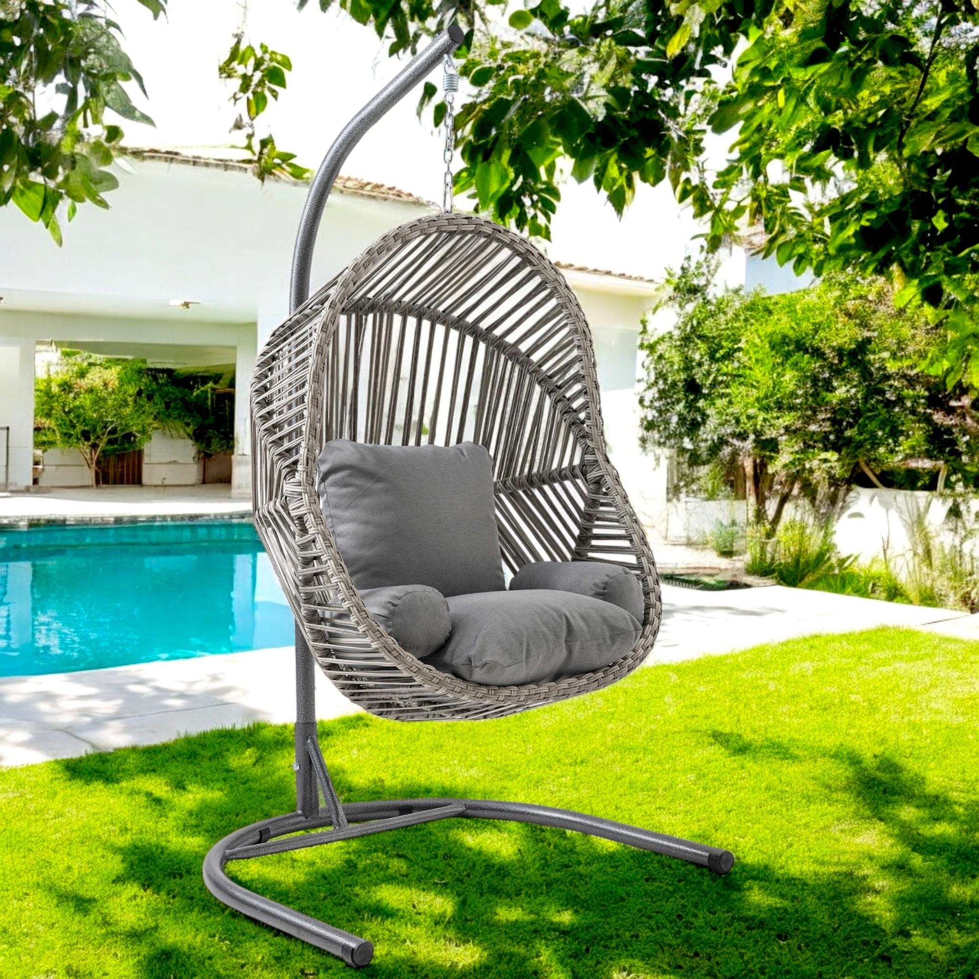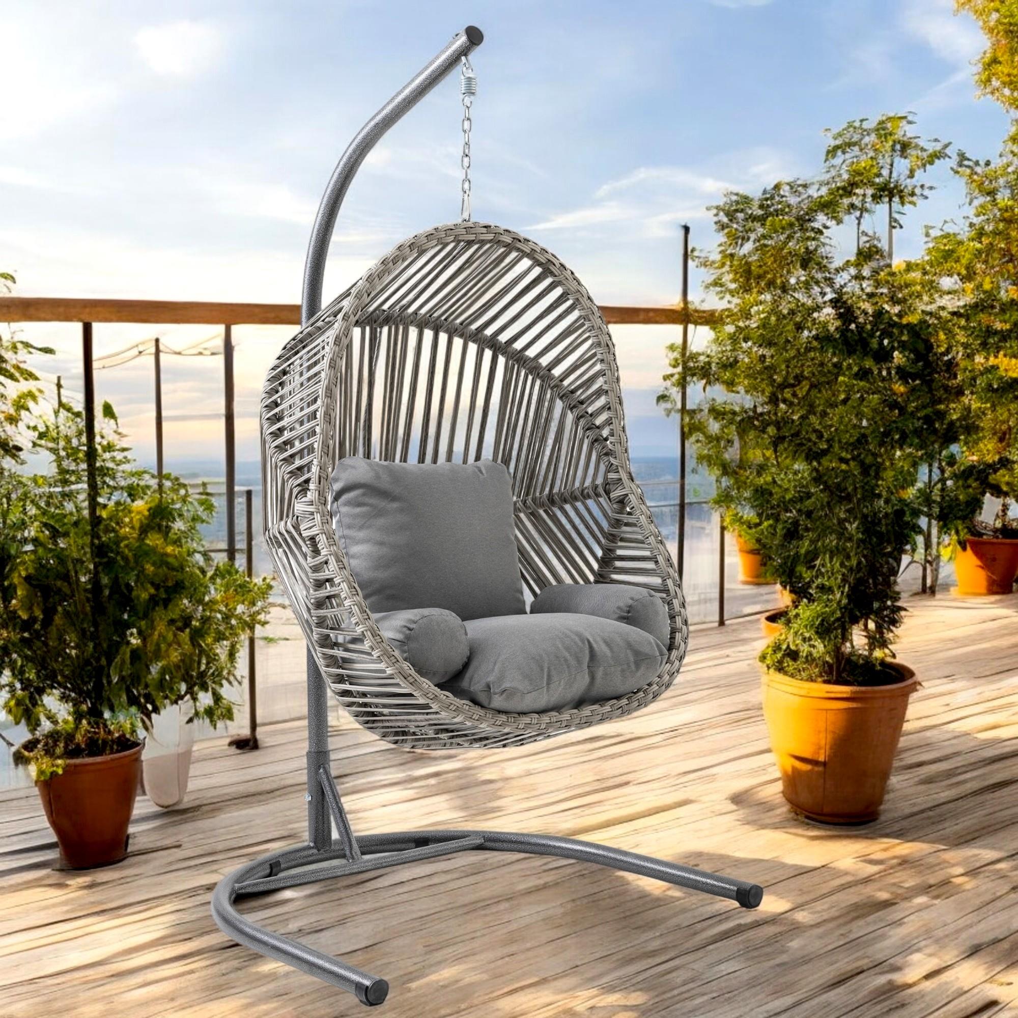 Rehome Kapadokya Tek Kişilik Rattan Bahçe Salıncağı | Gri