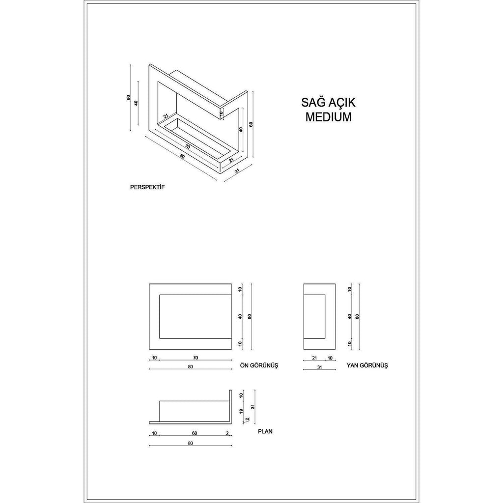ReHome Korflame Sağ Açık Medium Bacasız Şömine