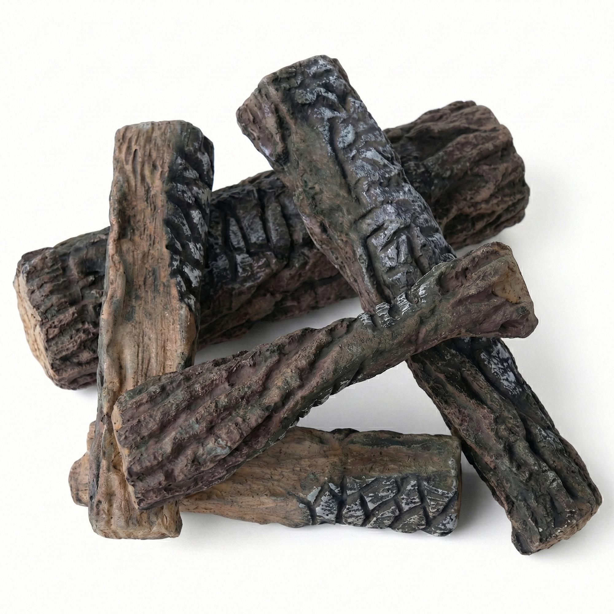 Set toplam 5 adet farklı ölçüde seramik odun parçasından oluşur.