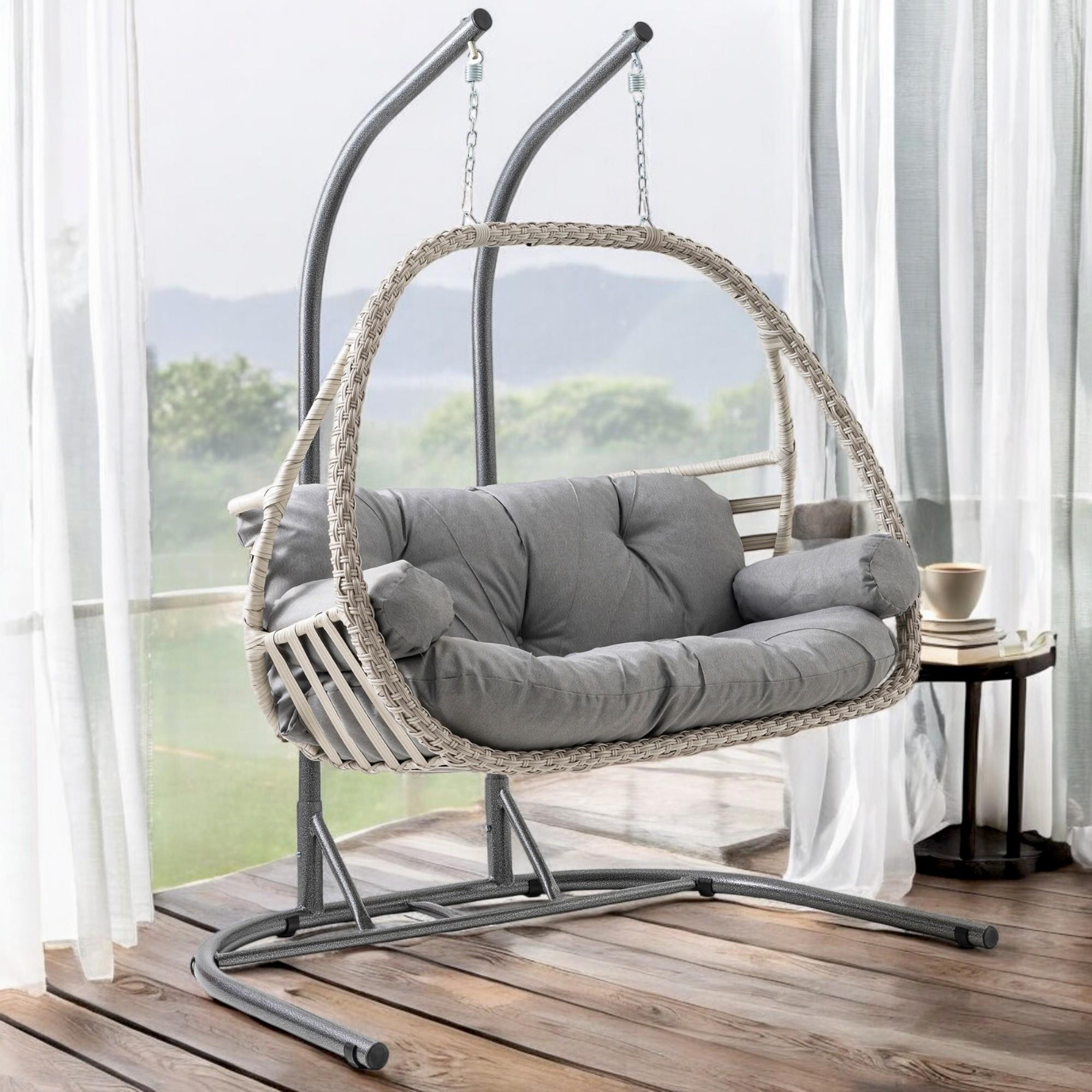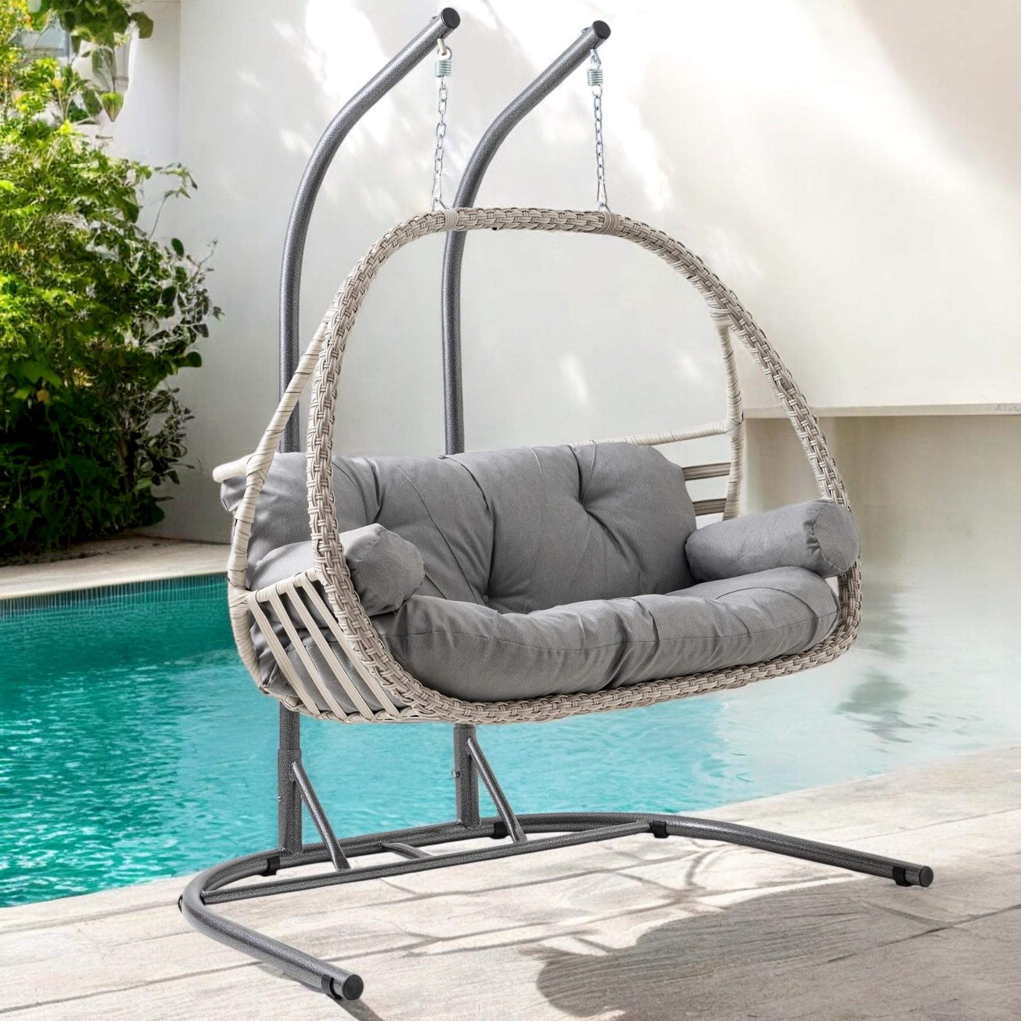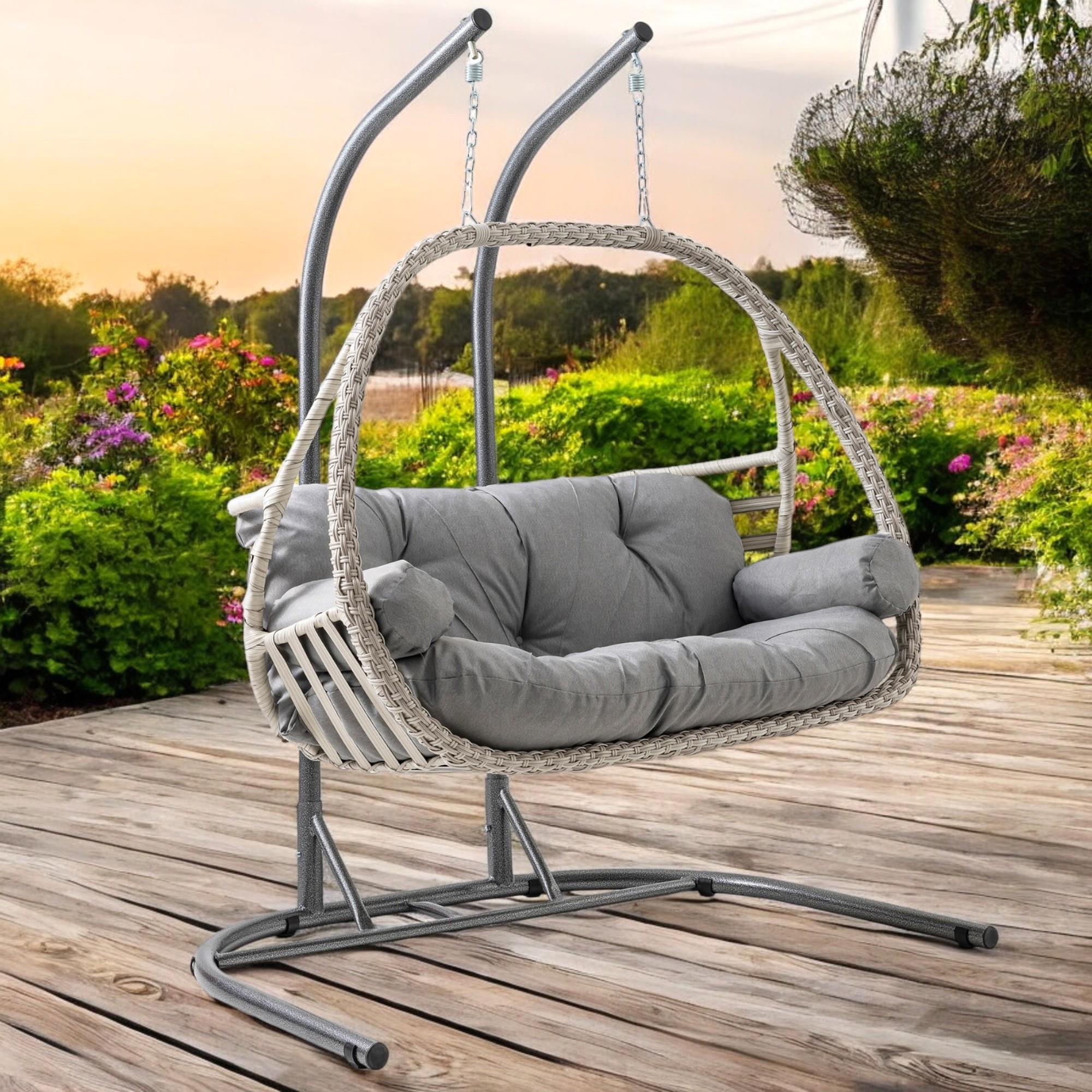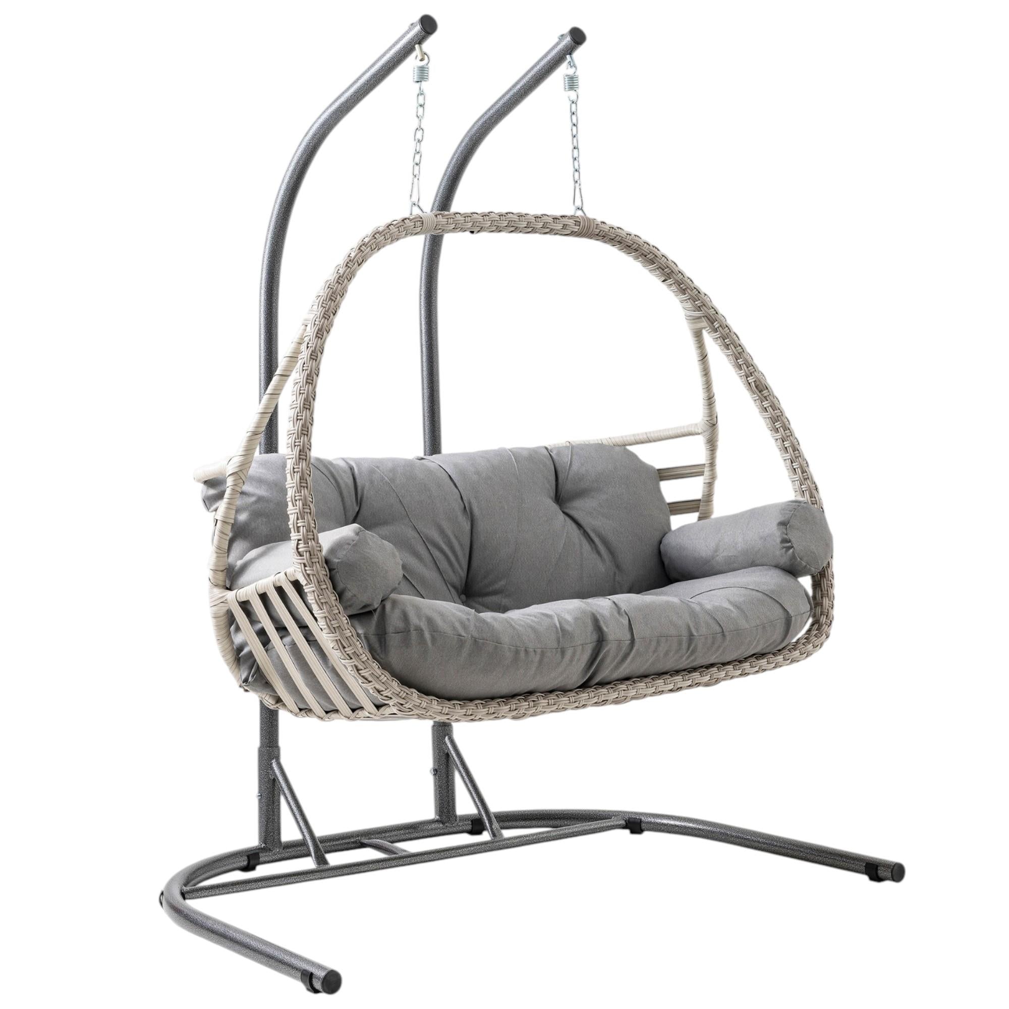 Rehome Malta Çiftli Rattan Bahçe Salıncağı | Beyaz