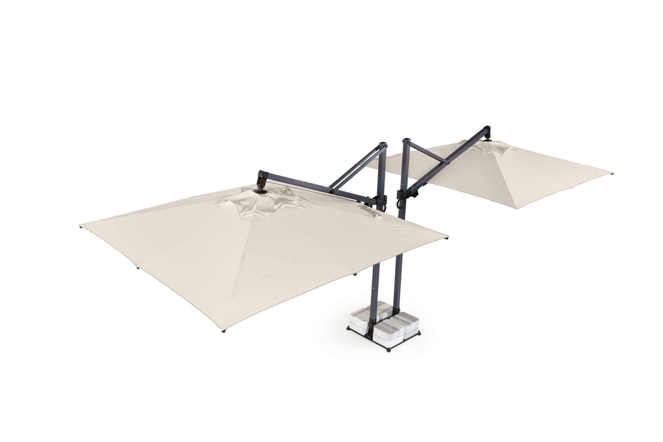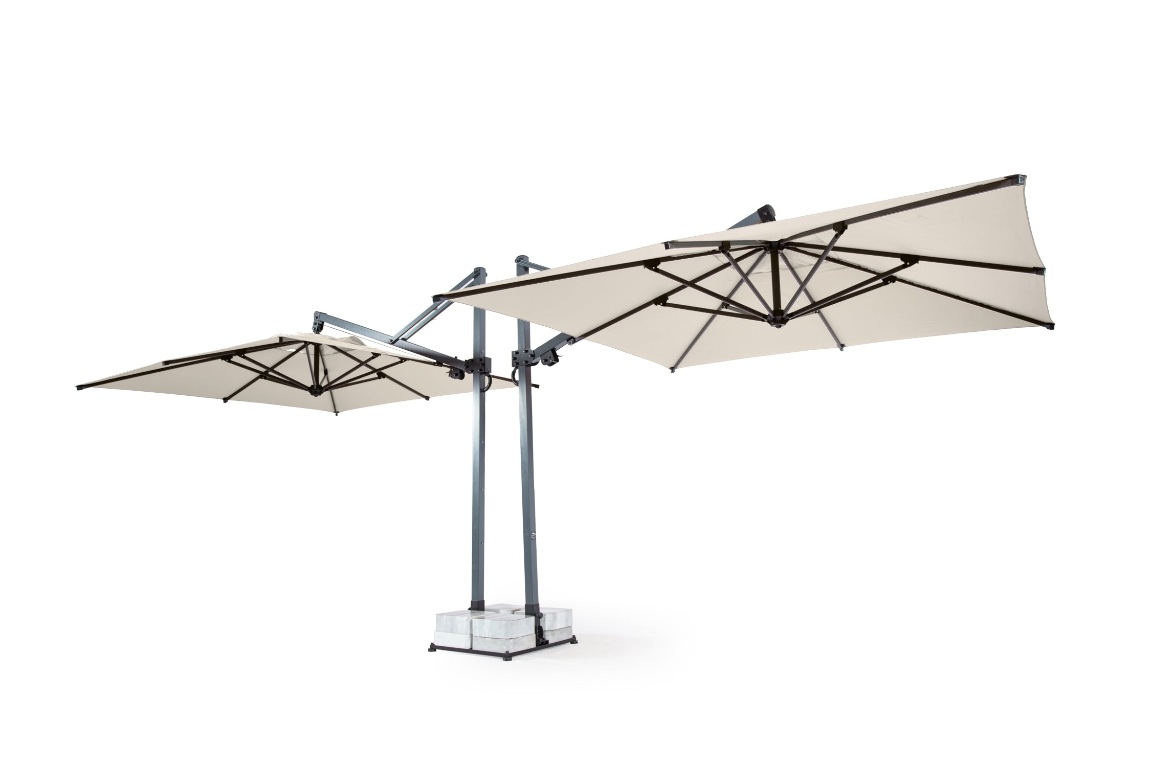 - 400x400 cm ölçülerinde iki kare şemsiye ile maksimum alan kapsama