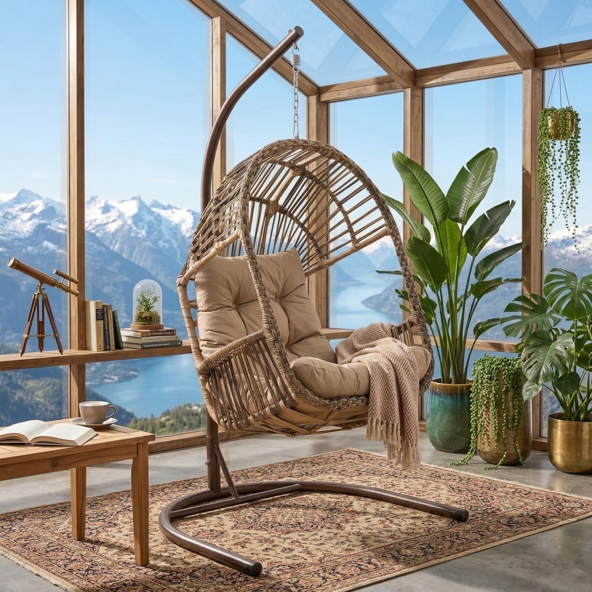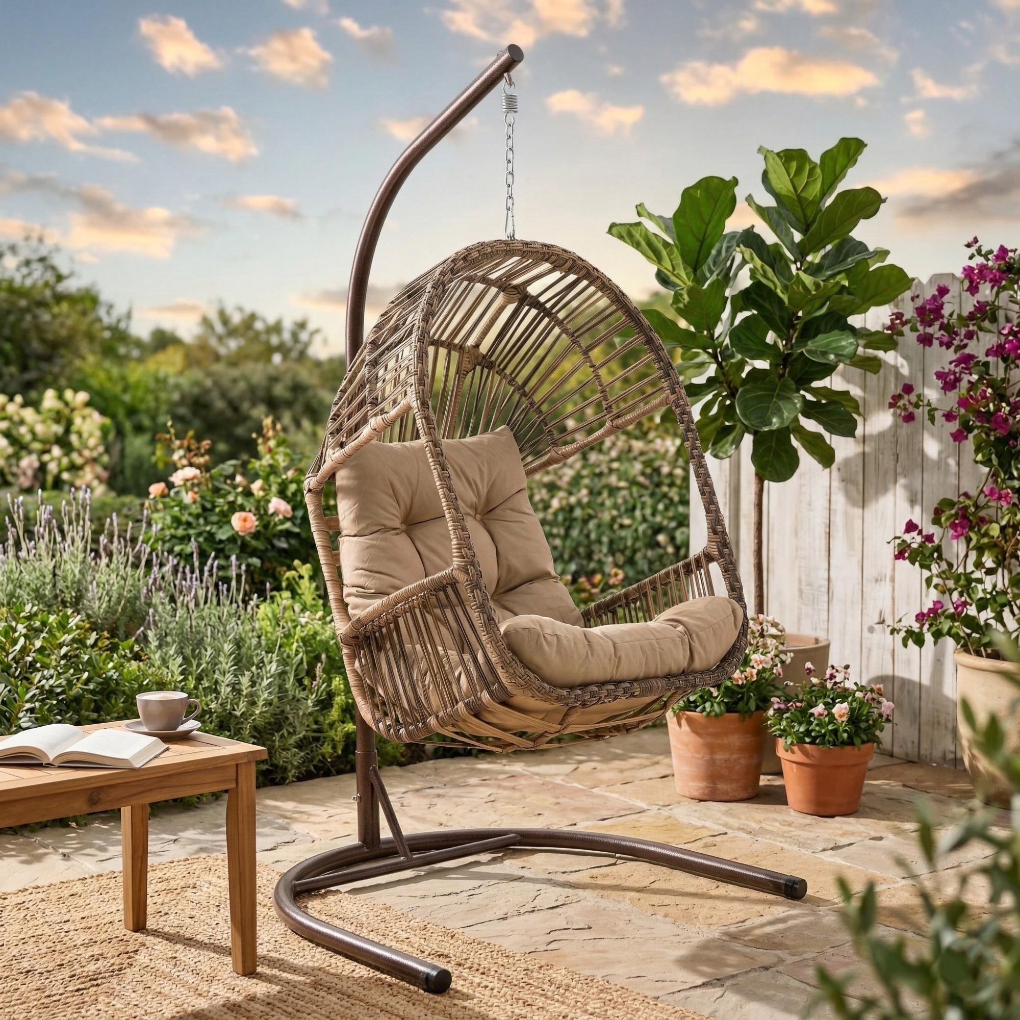 Rehome Truva Tek Kişilik Rattan Bahçe Salıncağı | Açık Kahve
