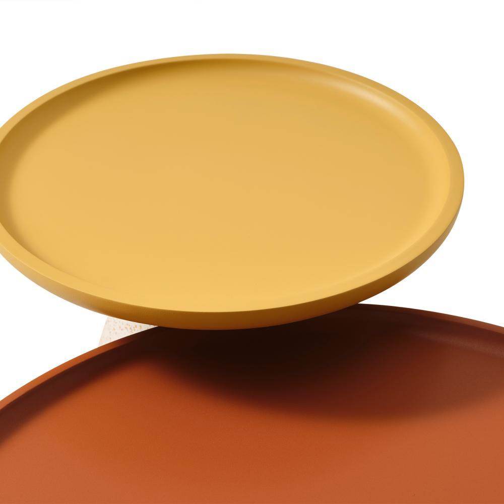 Tasarım: Modern ve şık bir tasarıma sahip olan bu krem benekli ve 3 farklı renk kombinasyonlu sehpa seti üç farklı boyutta sehpa içerir ve renkli bir üst yüzeye sahiptir.