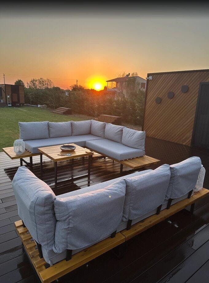 Estetik tasarımı ile göz kamaştıran bu köşe koltuk takımı, bahçenize modern bir hava katarken, dayanıklı malzemeleri ile uzun ömürlü kullanım sağlar.