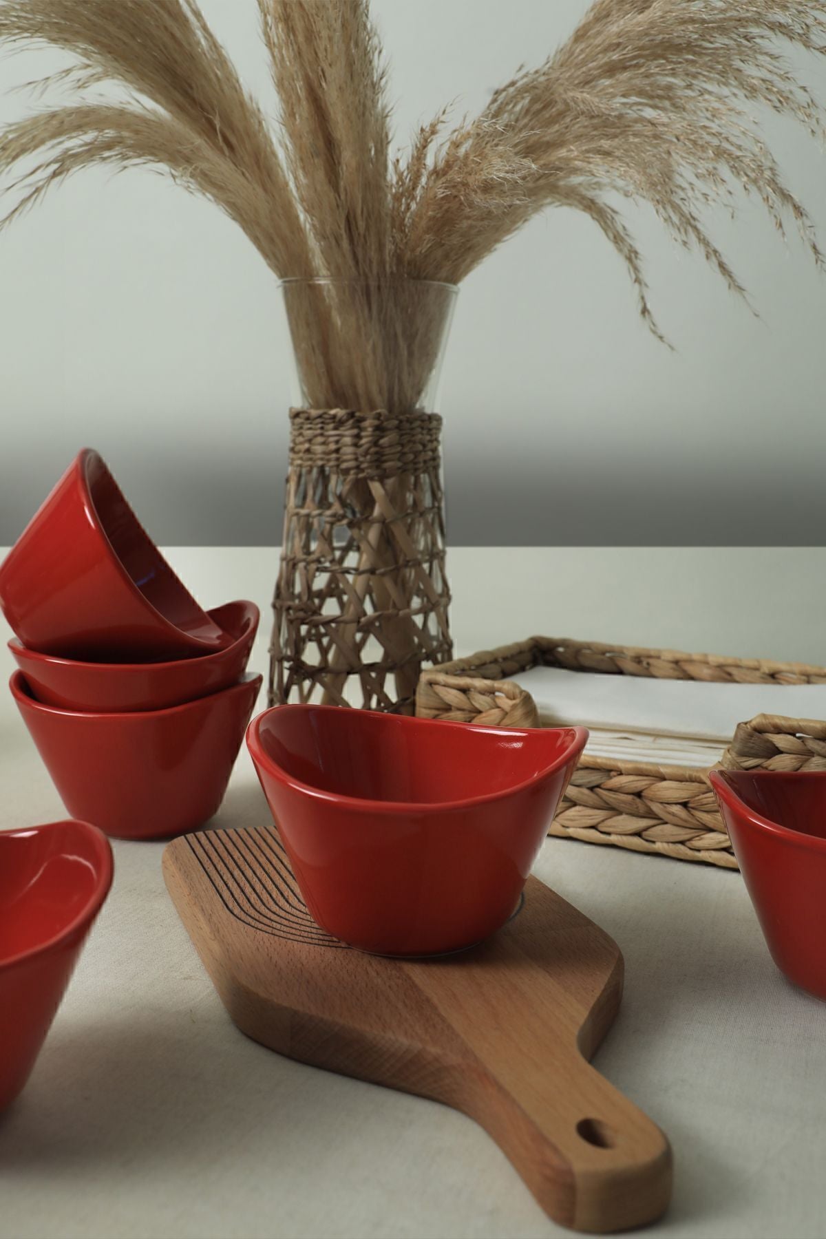 Sade bir aile yemeği veya kalabalık bir partide sizlere eşlik edecek keramika 6 adet tigela bayrak kırmızı çerezlik servislerinize çok şık bir hava katacaktır. Gözalıcı sunumlar yapmanızın püf noktası olacak bu ürünler, masanıza havalı bir görünüm kazandıracaktır.